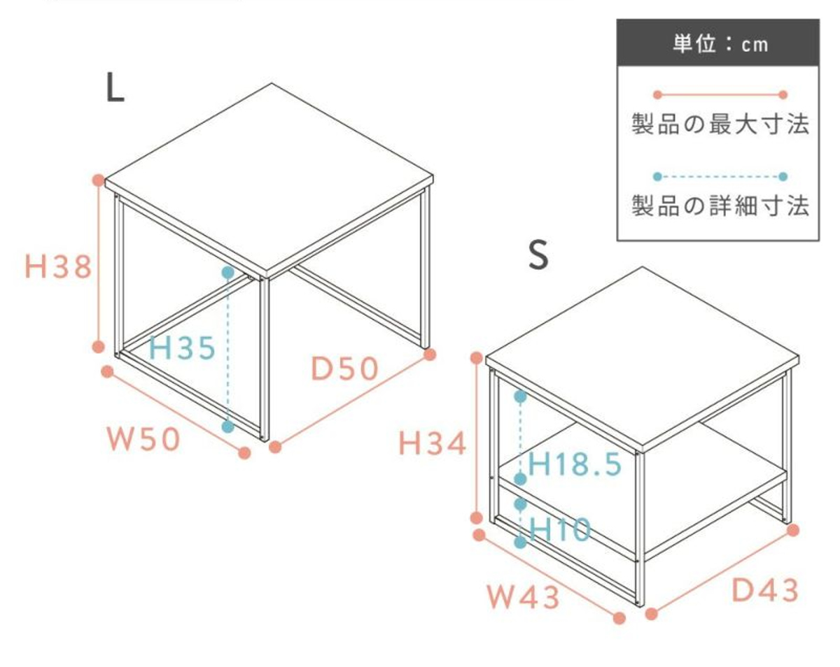 | サイズ | L:約 幅50×奥行50×高さ38(cm) S:約 幅43×奥行43×高さ34(cm) |