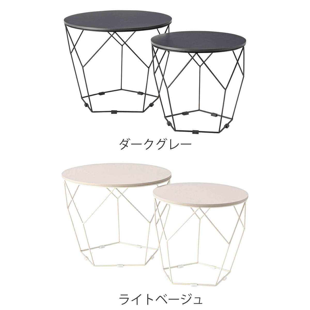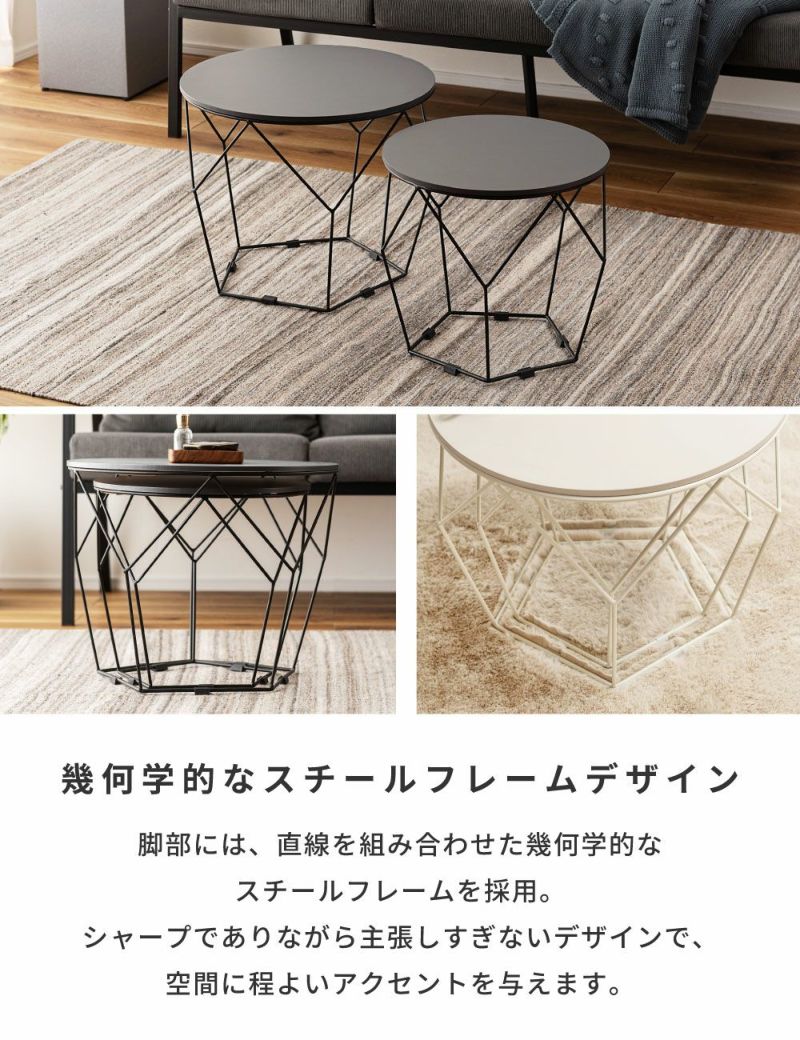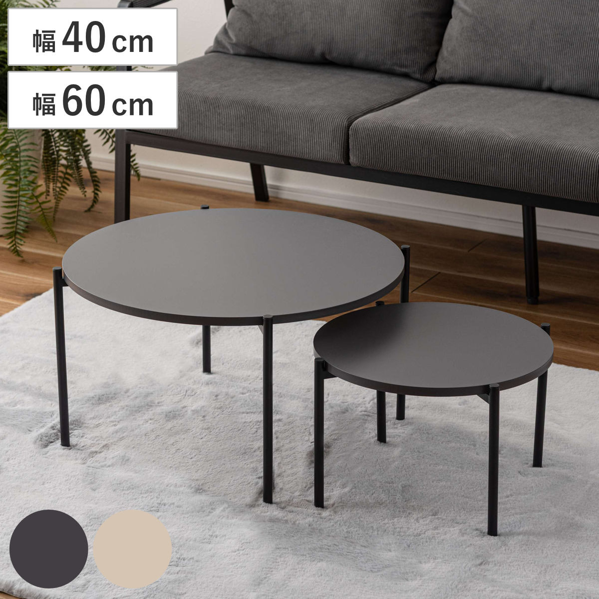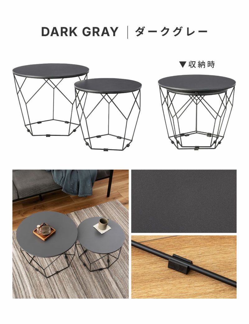 ローテーブルセット 幅40cm 幅50cm 円形 ネストテーブル ( テーブル センターテーブル リビングテーブル 机 丸テーブル サイドテーブル 大 小 2個セット トレー ラウンドテーブル ソファテーブル 入れ子式 省スペース スチール脚 ) 【ダークグレー】