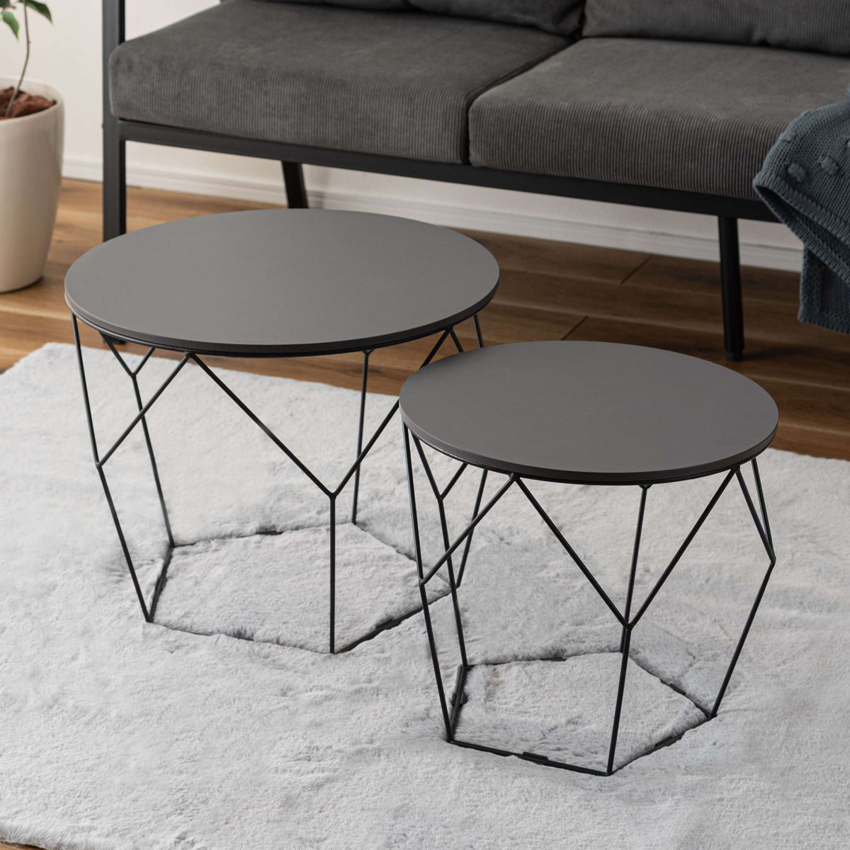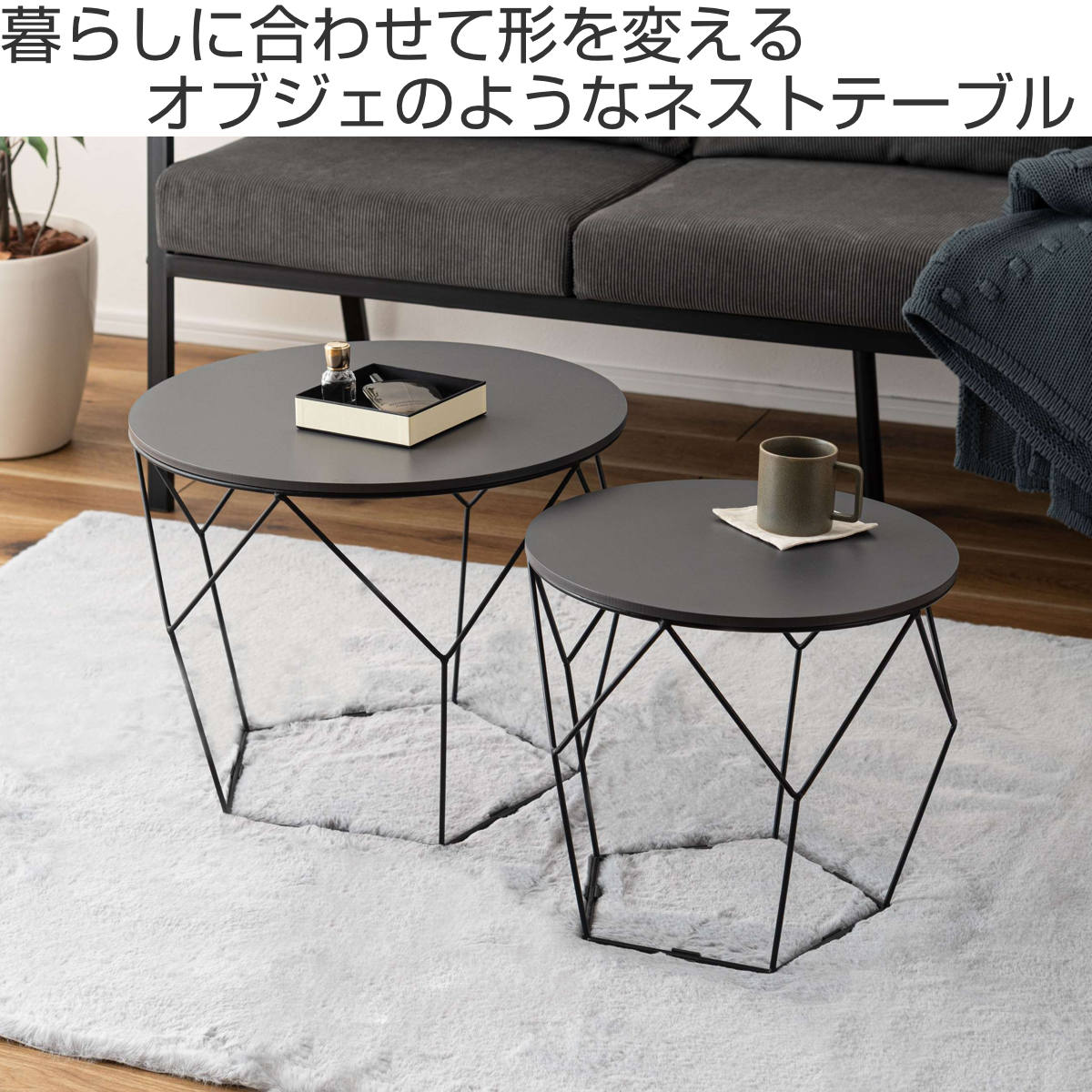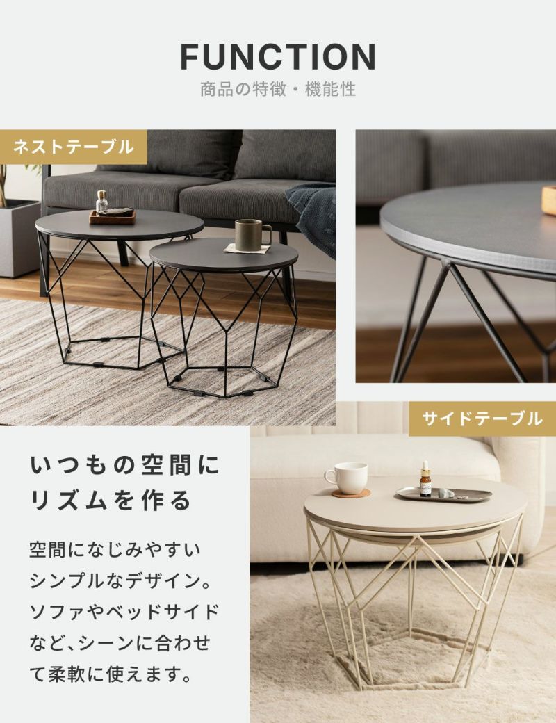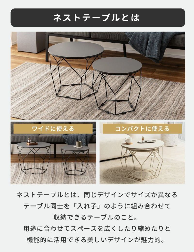 ローテーブルセット 幅40cm 幅50cm 円形 ネストテーブル ( テーブル センターテーブル リビングテーブル 机 丸テーブル サイドテーブル 大 小 2個セット トレー ラウンドテーブル ソファテーブル 入れ子式 省スペース スチール脚 ) 【ダークグレー】