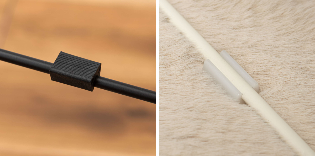 スチール脚には床への傷付きを軽減するためのプラスチック素材が付属しているので、フローリングでも安心です。