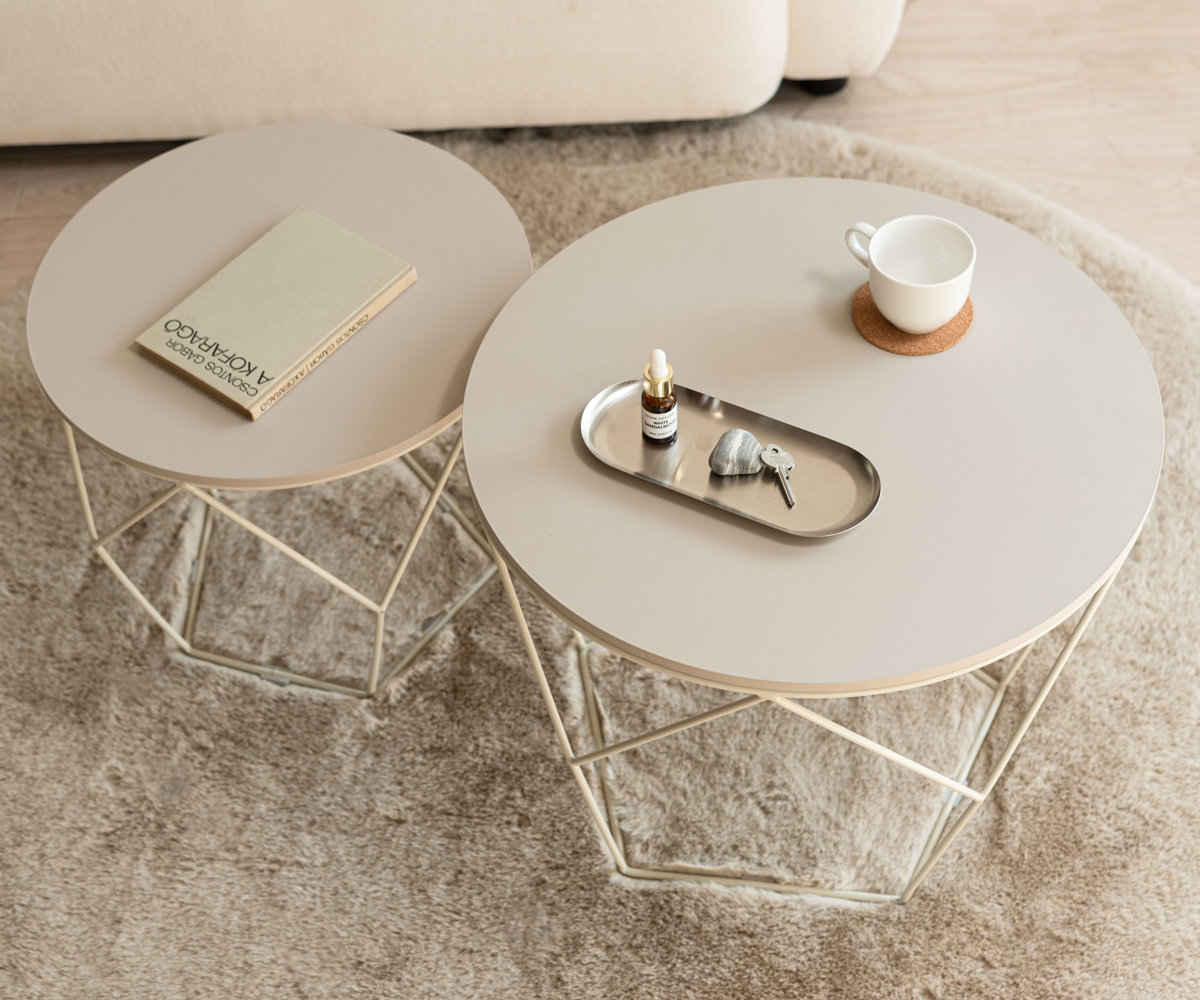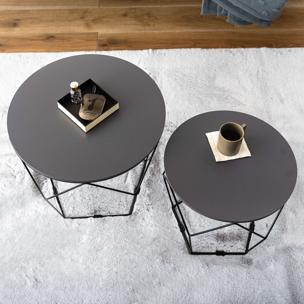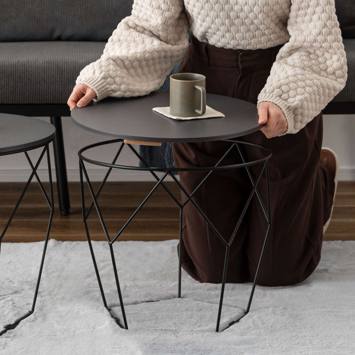 ローテーブルセット 幅40cm 幅50cm 円形 ネストテーブル ( テーブル センターテーブル リビングテーブル 机 丸テーブル サイドテーブル 大 小 2個セット トレー ラウンドテーブル ソファテーブル 入れ子式 省スペース スチール脚 ) 【ダークグレー】のレビュー