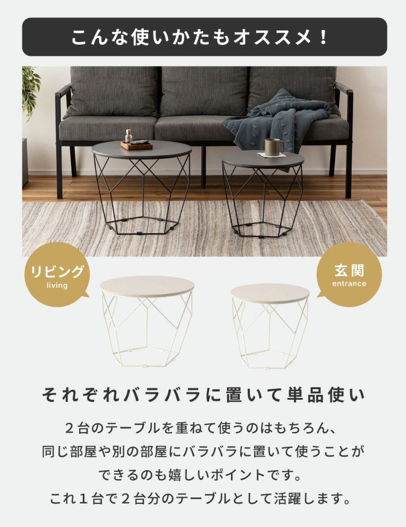 2台のテーブルを重ねて使うのはもちろん、別の部屋にバラバラに置いて使えるのも嬉しいポイントです。これ1セットで2台分のテーブルとして活躍します。