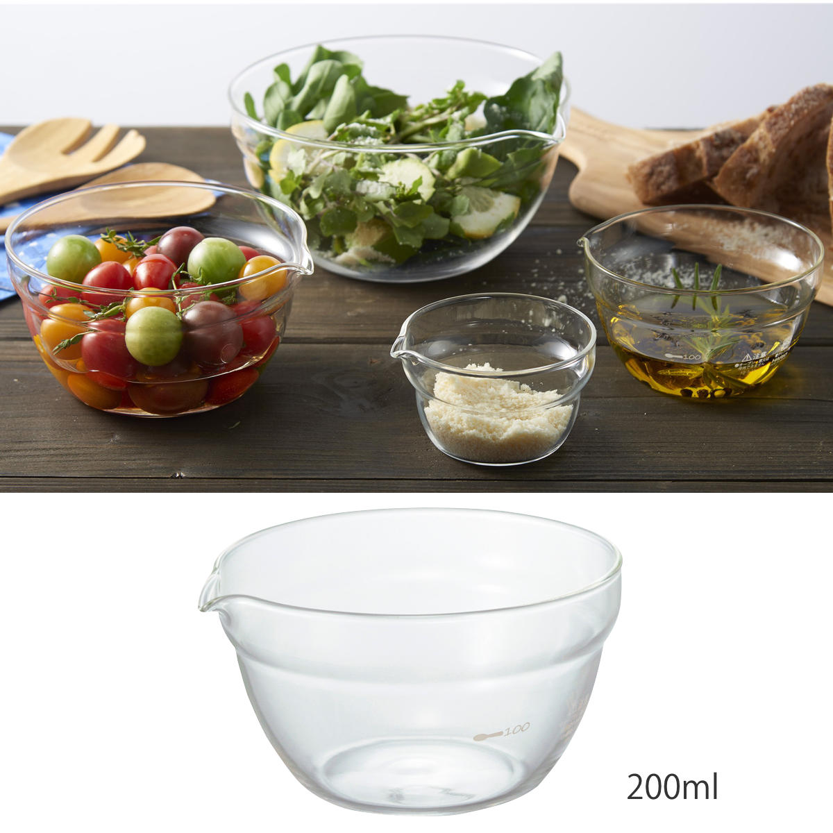 調理やお菓子作りに便利な耐熱ガラス製ボウル 200ml