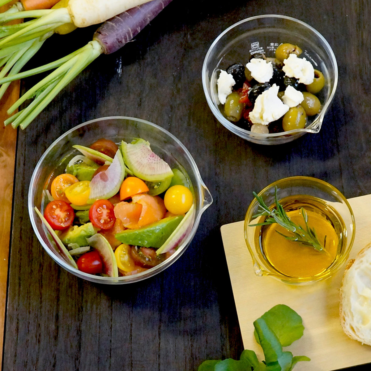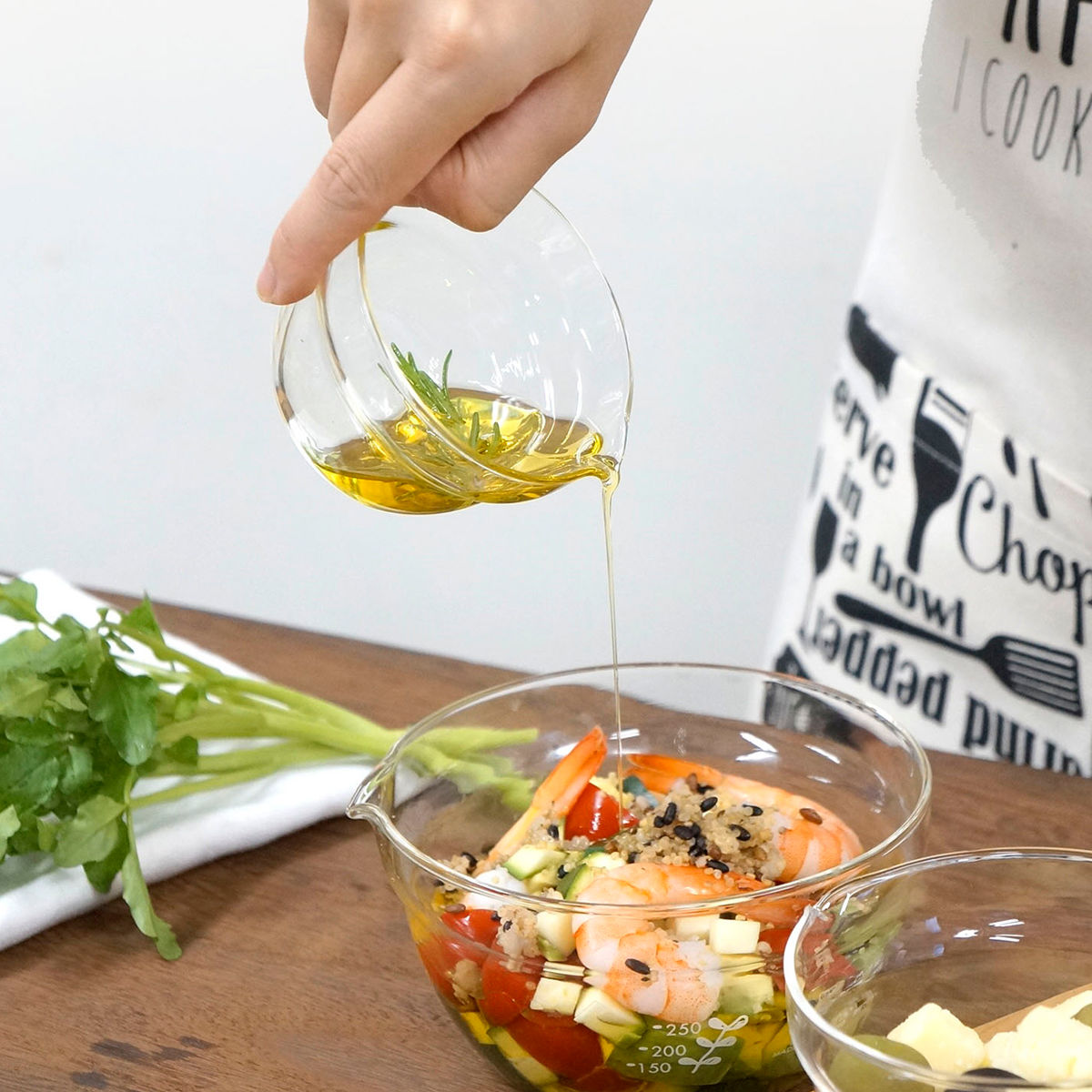 混ぜる・溶かす・注ぐといった作業がスムーズに行える、耐熱ガラス製のボウルです。湯せんや電子レンジでの加熱にも対応し、温めながらの調理も安心してお使いいただけます。汚れやニオイが付きにくく色移りもしにくいため、油分のある調味料の後もすっきり洗えて清潔に使えます。容量は200mlで、少量のドレッシングやタレづくりに便利です。