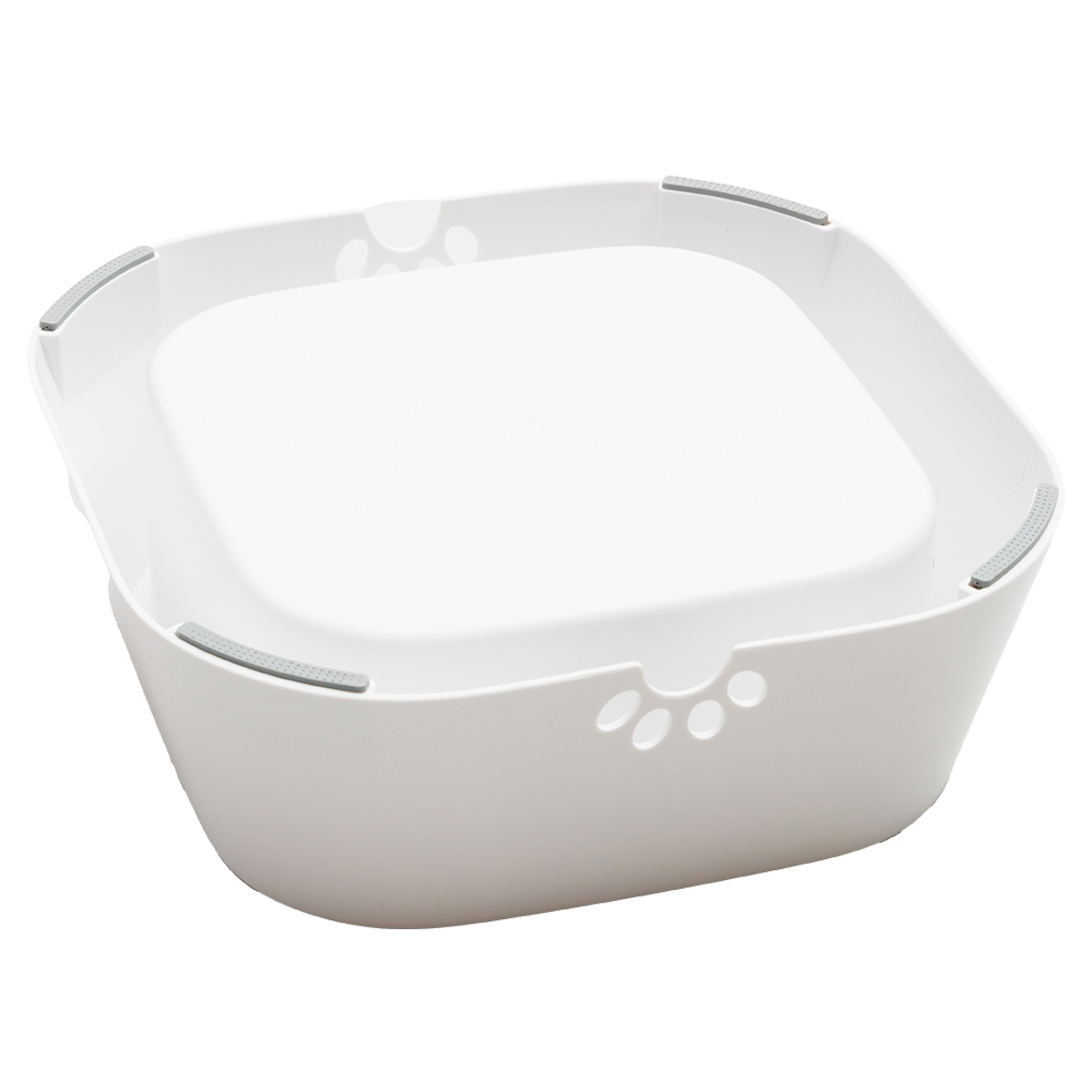 飲み水の飛び散りや床の濡れを防ぐ、飛び散り防止設計のペット給水器です。特殊構造により、水が勢いよくこぼれるのを抑え、床まわりを清潔にキープします。飲みこぼしや水遊びが気になるご家庭にもぴったりです。
