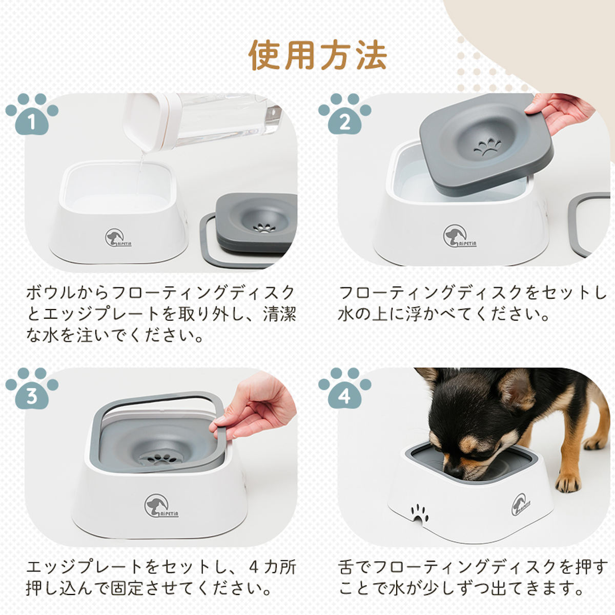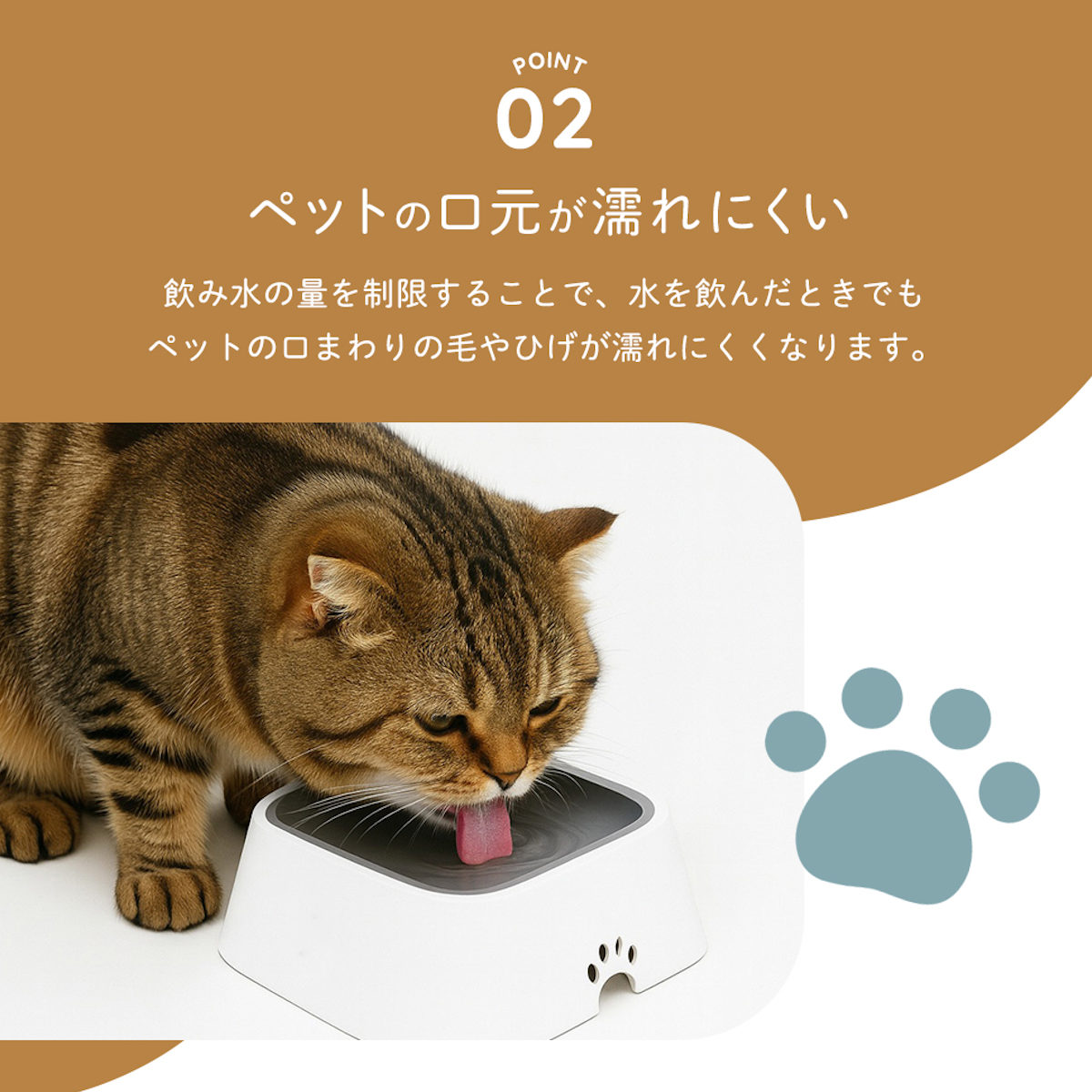 ●水の量を制限することでペットの口元が濡れにくくなります。