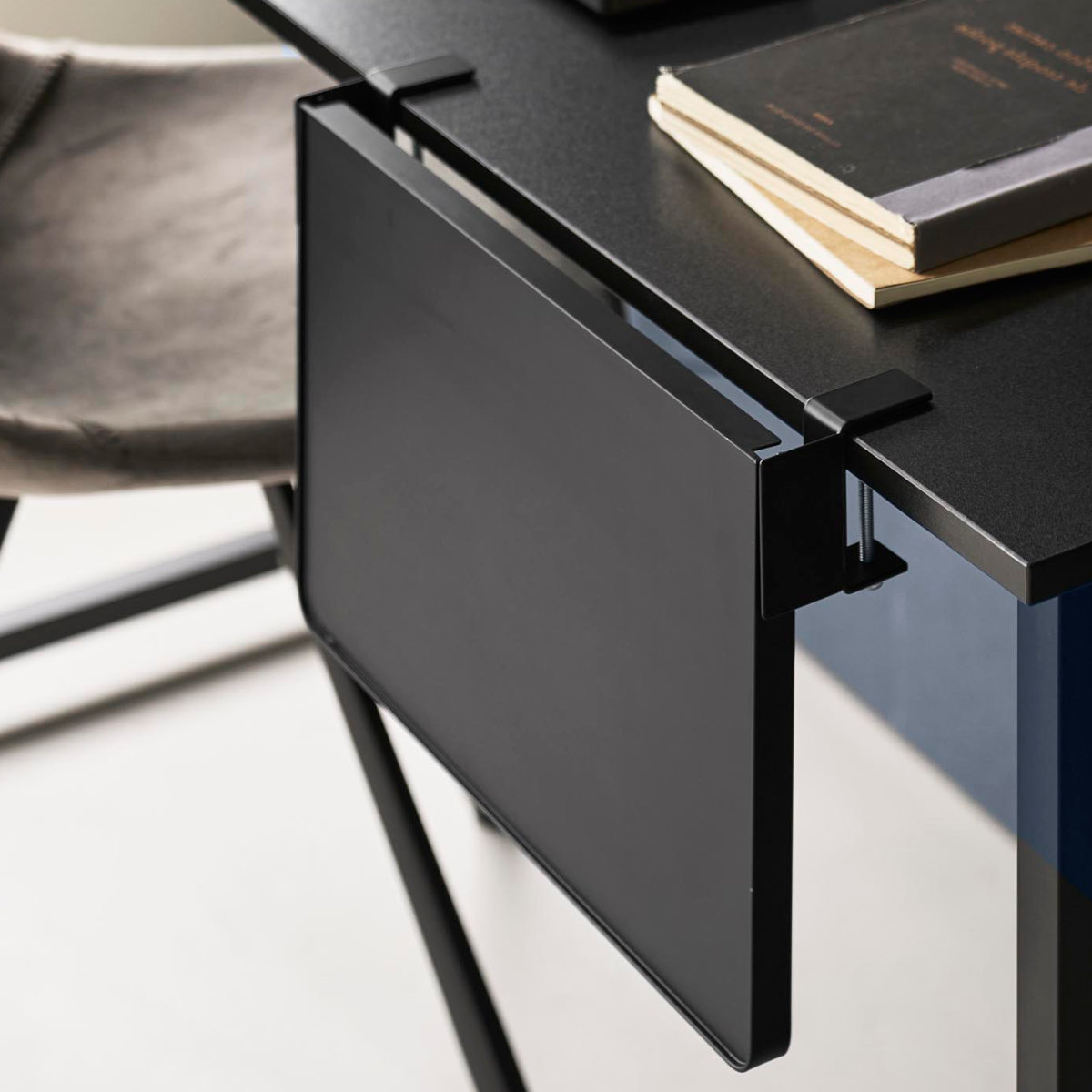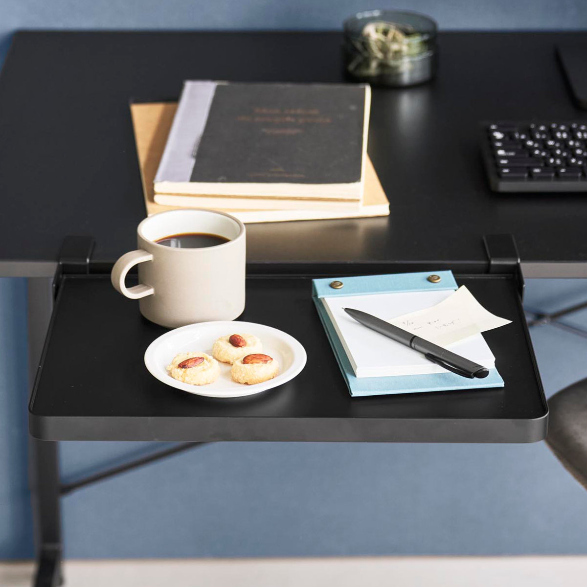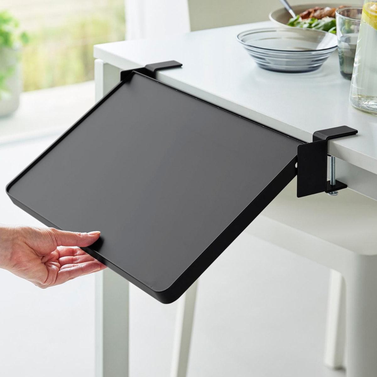 クランプ式でしっかりと挟んで固定できるため、ぐらつきにくく安定して使えます。ネジで締めるだけで簡単に取り付けられ、使用中も安心して物を置くことができます。