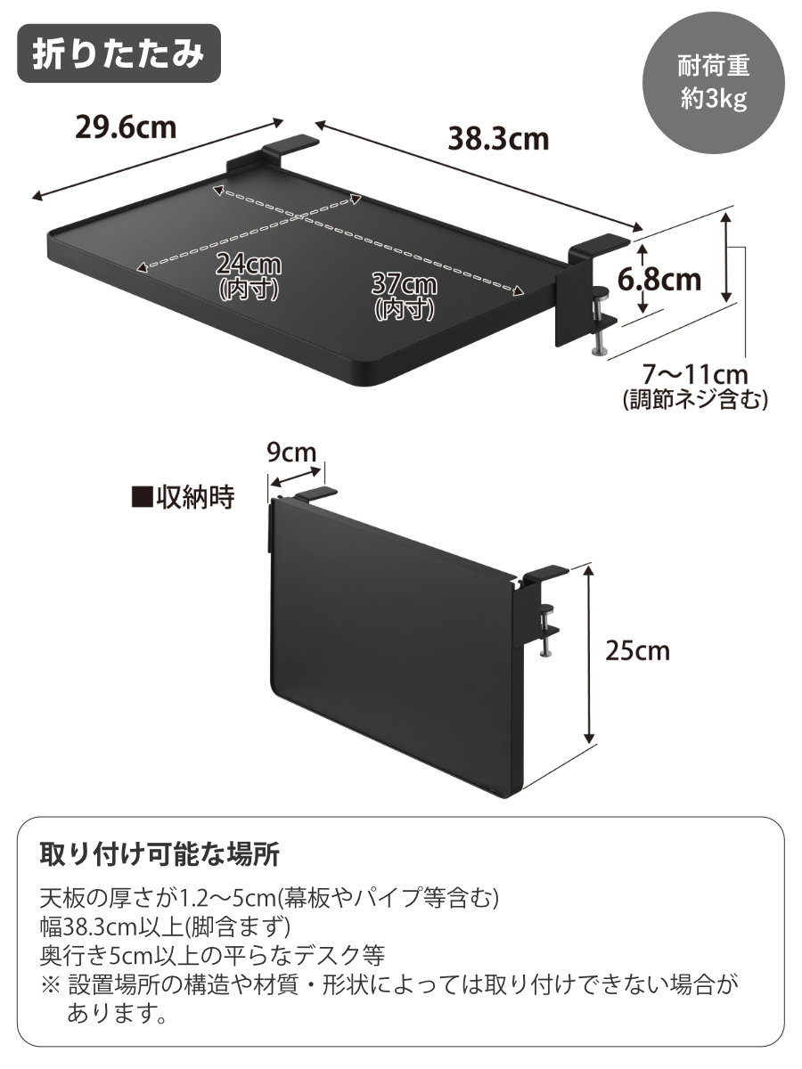| サイズ | 約 幅38.3×奥行29.6×高さ6.8(cm) 使用時:幅38.3×奥行29.6×高さ6.8cm(調節ネジ含まず) |