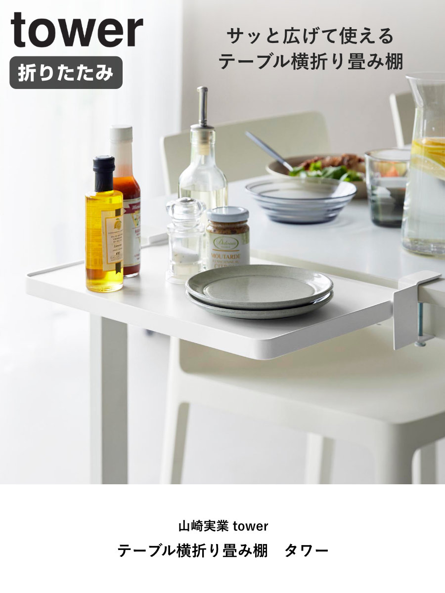 山崎実業 tower テーブル横折り畳み棚 タワー ( 4903208105231 タワーシリーズ 補助台 補助テーブル 折りたたみ テーブル横 折り畳み棚 作業スペース 一時置き 一時置き場 収納 ダイニングテーブル テーブル ) 【ホワイト】