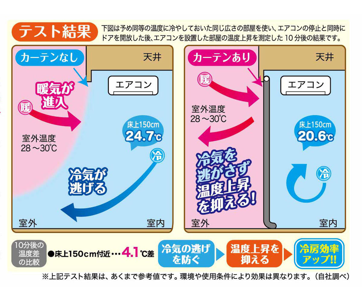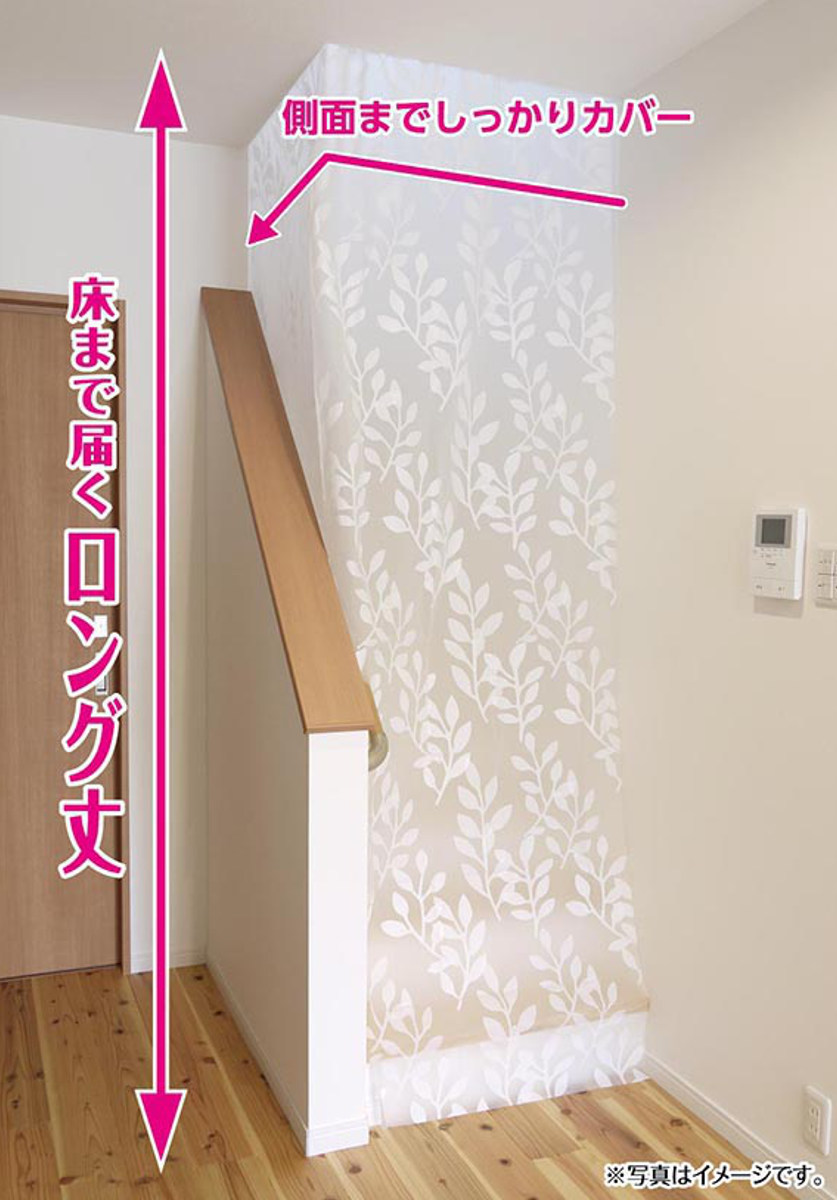 ●床まで届くロング丈で、エアコンの冷気を逃さずに室内温度の上昇を抑えることができます。