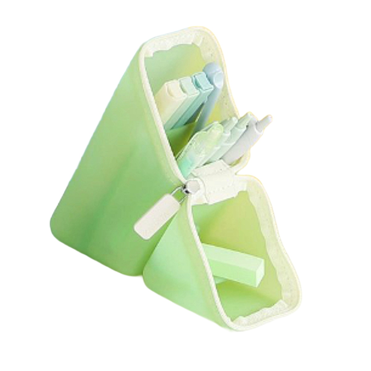 ペンケース ペン立て カクスタ 文房具 ぷにグミ シアー ペンスタンド ( 筆箱 収納 大容量 シンプル おしゃれ ファスナー 立てる 自立 縦 スリム スタンド 持ち運び コンパクト 文具 オフィス 学校 ) 【メロン】