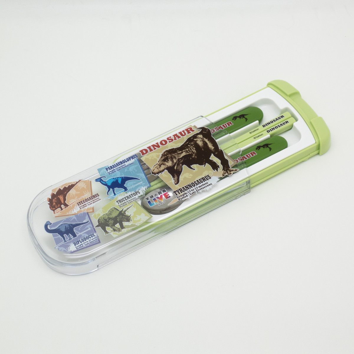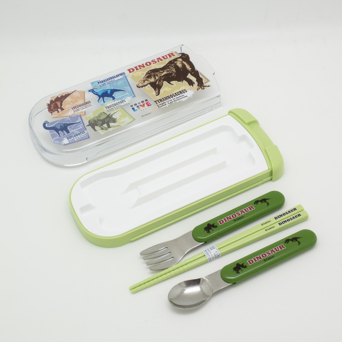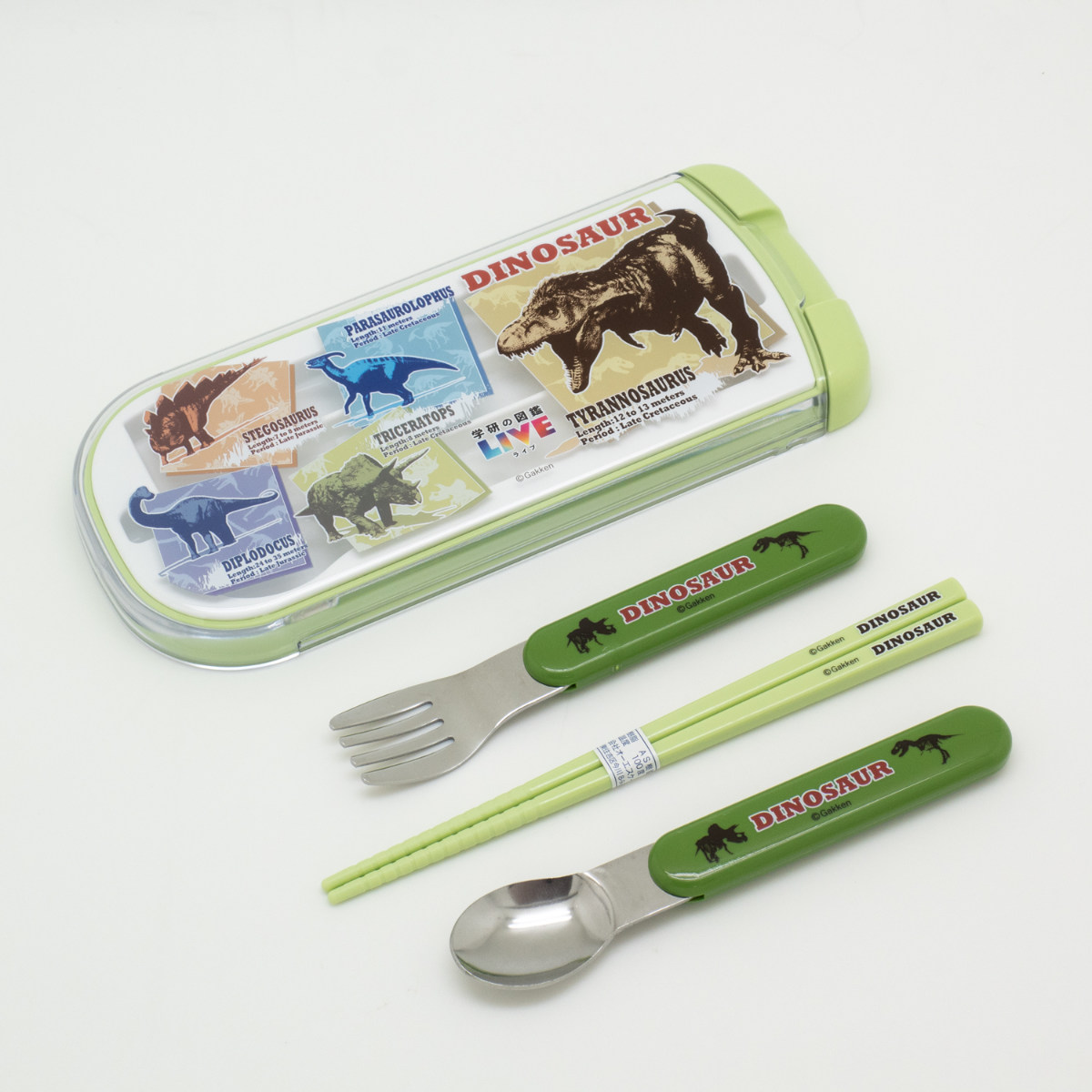 トリオセット 引フタ 学研の図鑑LIVE ( 食洗機対応 抗菌 箸 スプーン フォーク カトラリーセット 子供 日本製 食洗機OK カトラリー お箸 お弁当 弁当 給食 キッズ スライド式 )