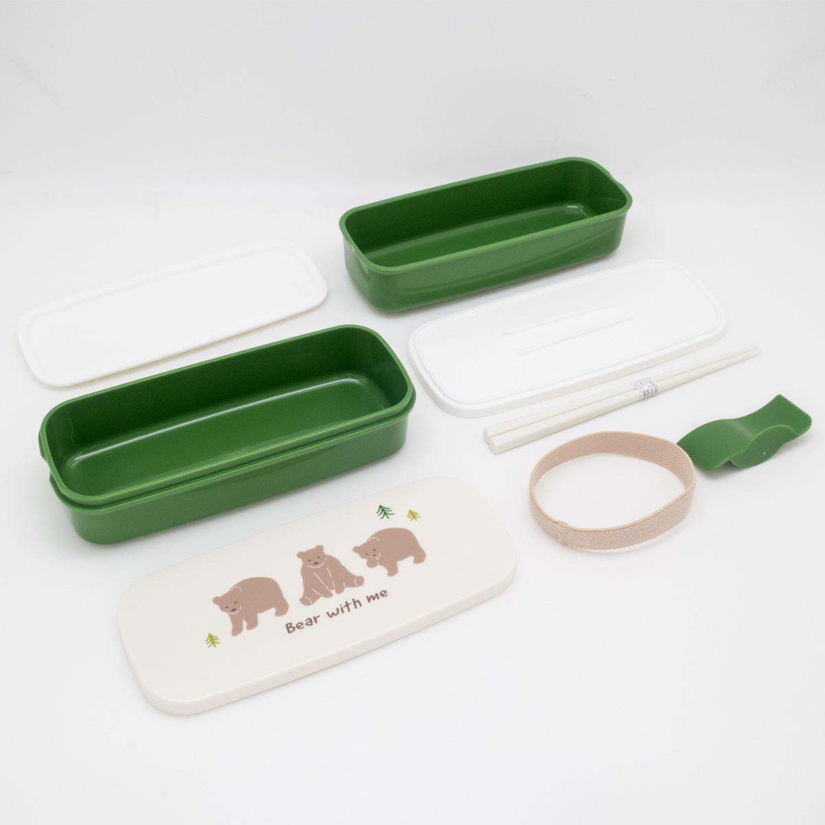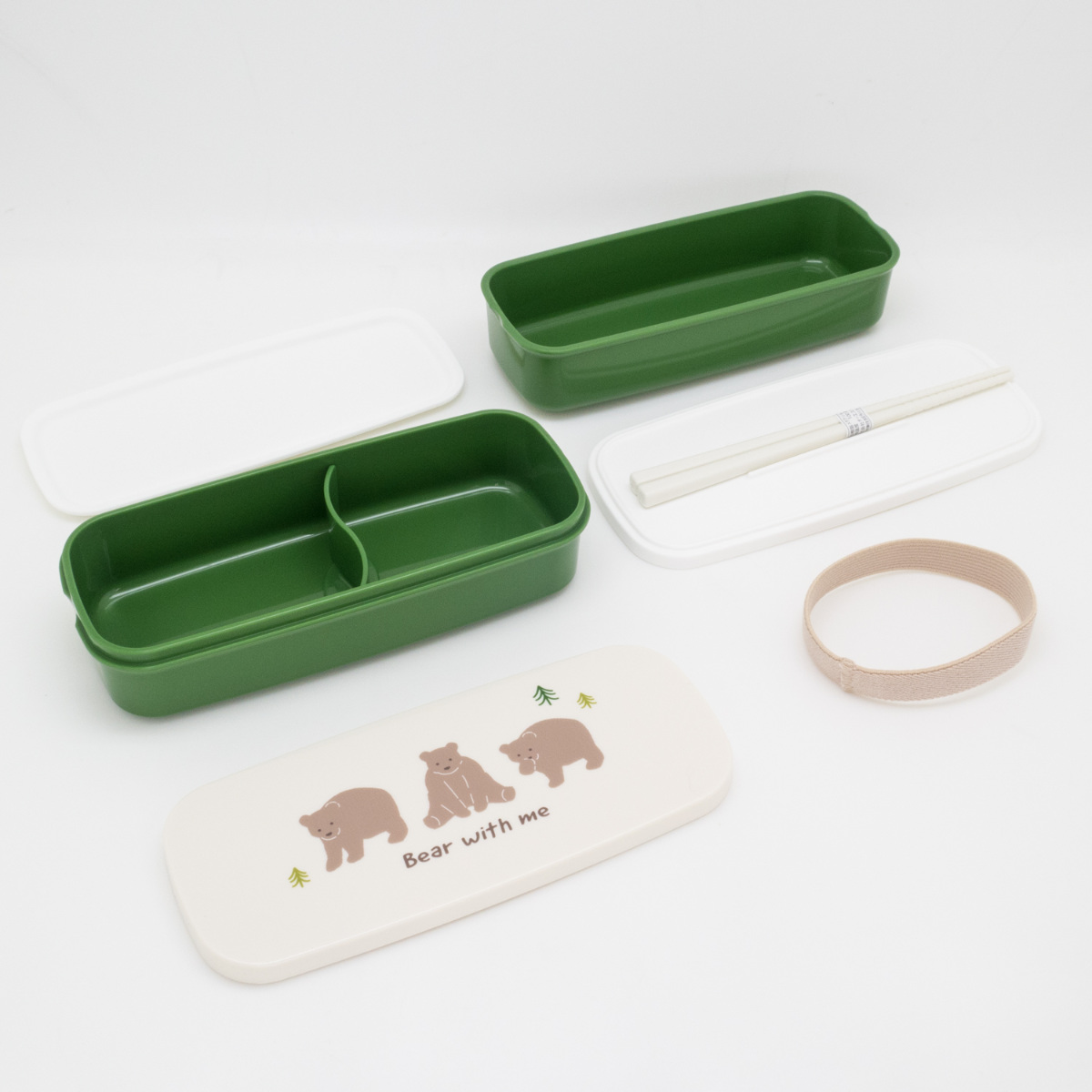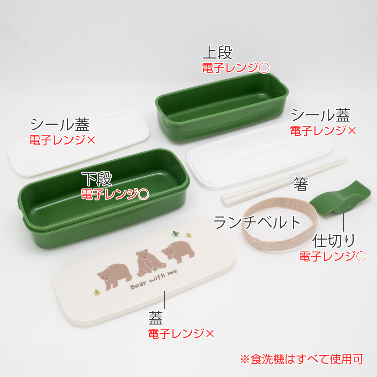 弁当箱 640ml ランチボックス二段 仕切付 ベアー ( お弁当箱 食洗機対応 レンジ対応 抗菌加工 二段 日本製 食洗機OK レンジOK お弁当 弁当 箸付き 入れ子式 ランチベルト付き 仕切り付き 抗菌 女性 女子 )