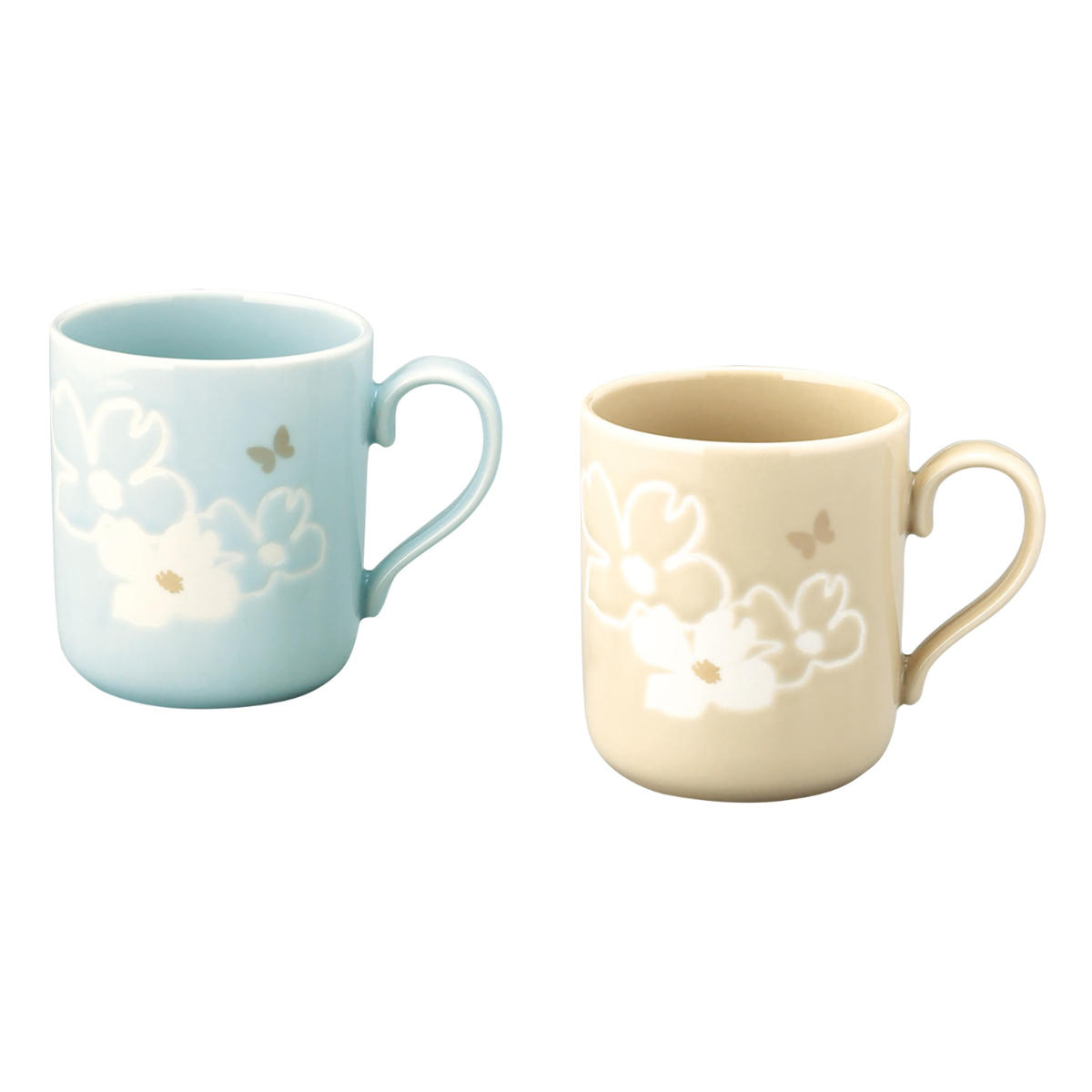 淡いベージュとブルーの色釉で花をモチーフにした、上品でやさしいデザインのフルールシリーズのペアマグセットです。主張しすぎず、料理を引き立てるデザインで幅広い年代に好まれる落ち着いた華やかさが魅力です。ご夫婦やご家族での日常使いはもちろん、大切な方への贈り物にもおすすめです。