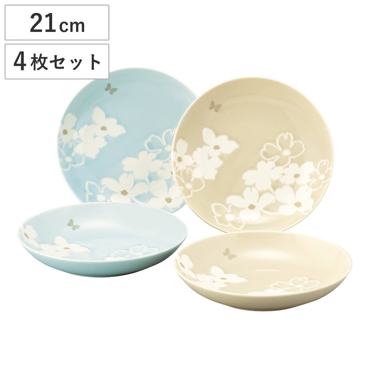●淡いベージュとブルーの色釉が魅力的なモリハナエのフルールシリーズです。
