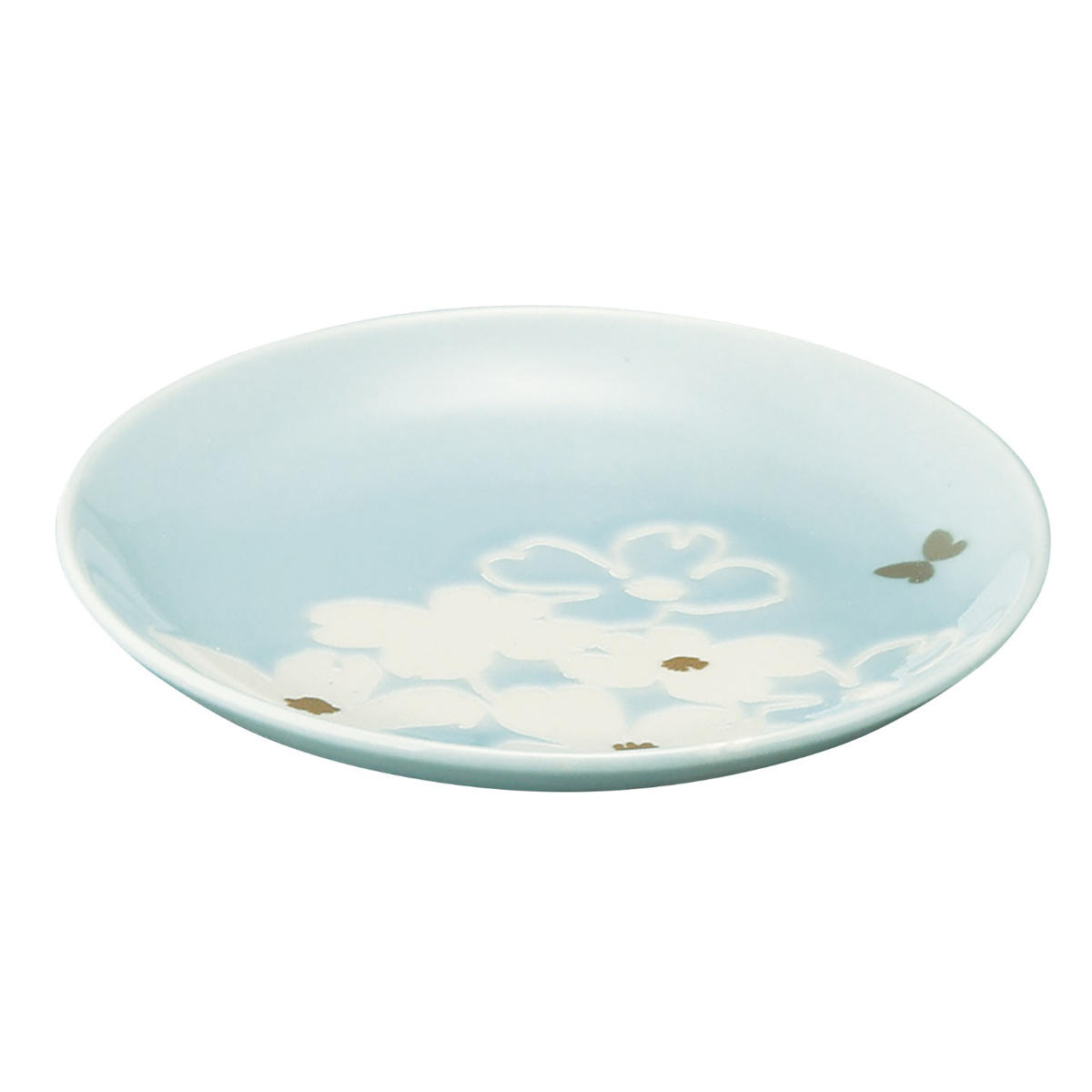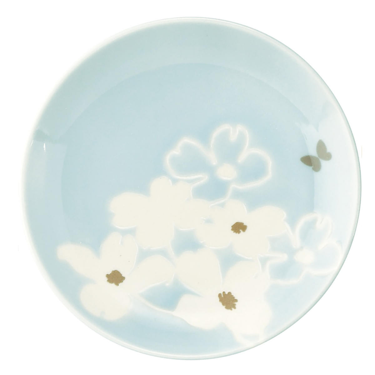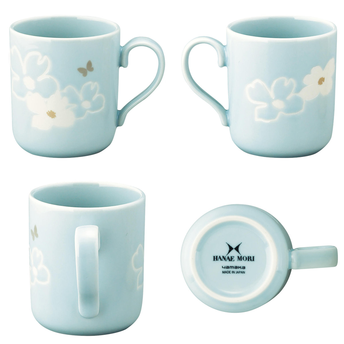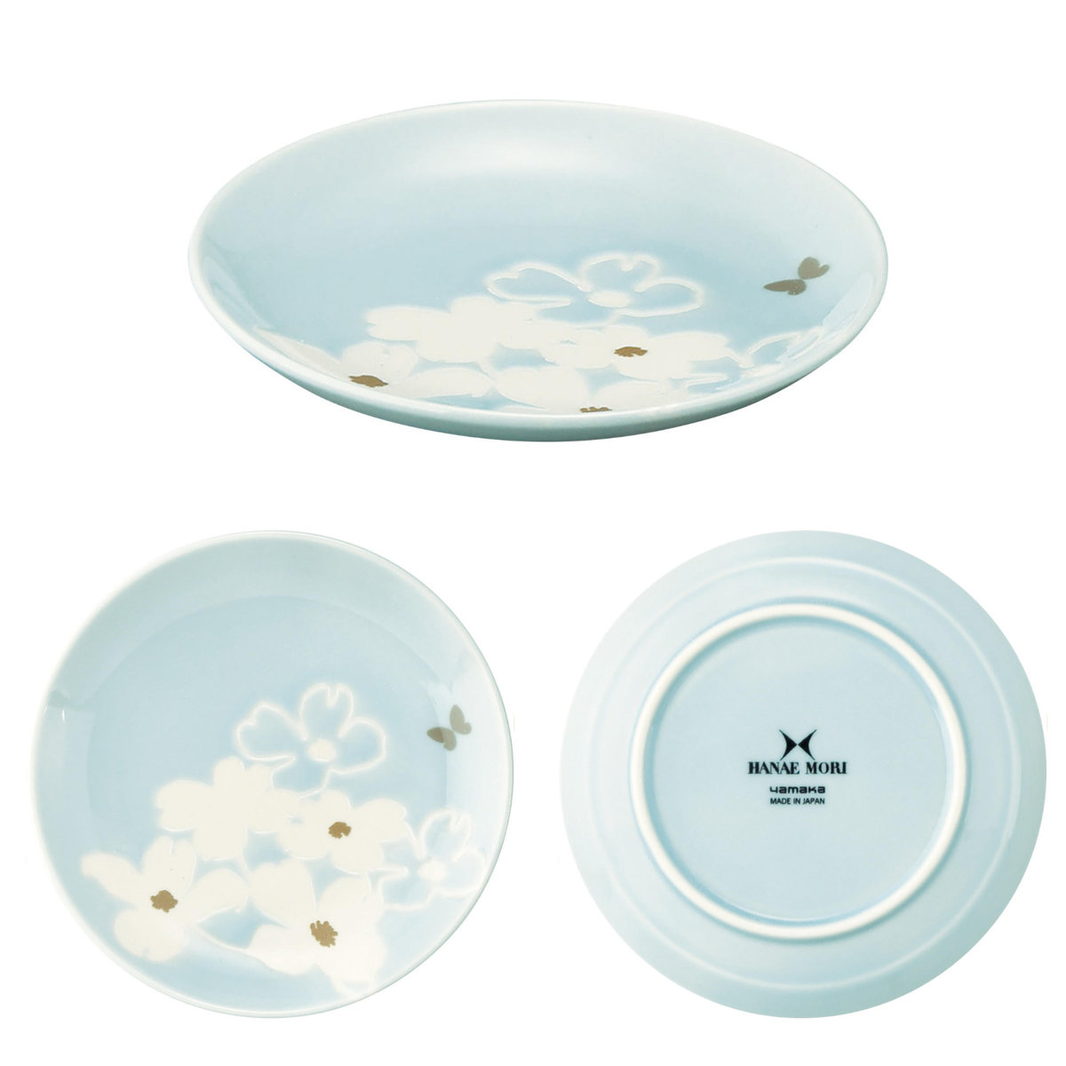 ●淡いベージュとブルーの色釉が魅力的なモリハナエのフルールシリーズです。