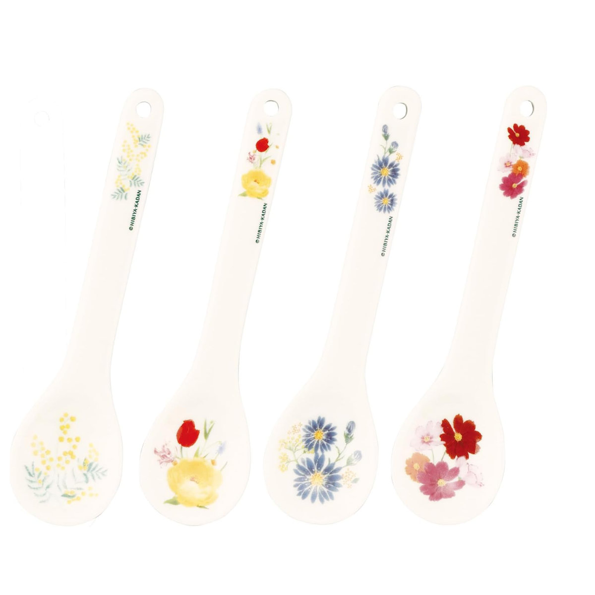華やかなフラワーデザインが魅力の陶製スプーン 4本セット