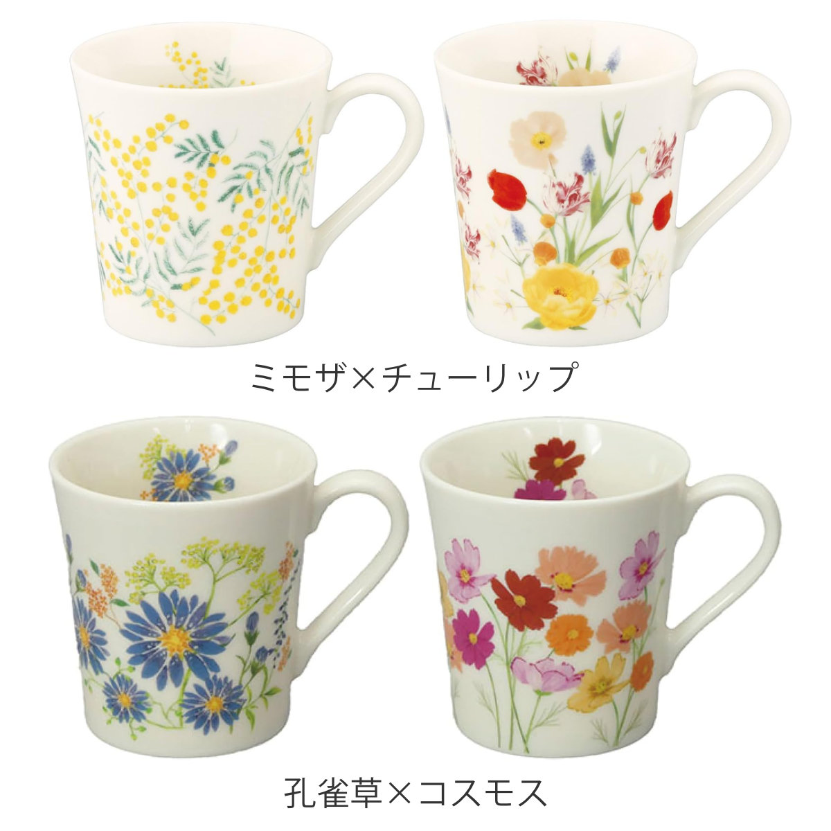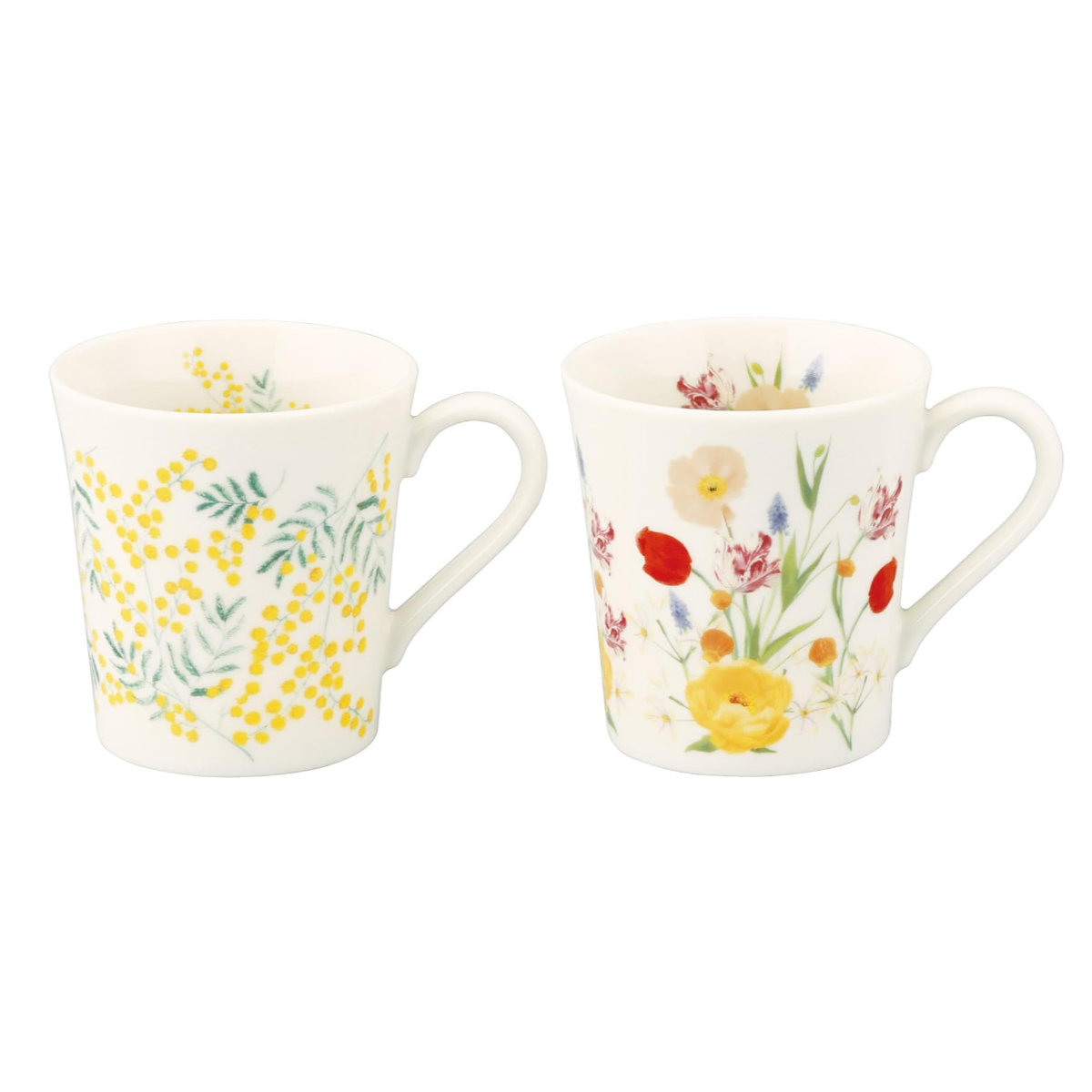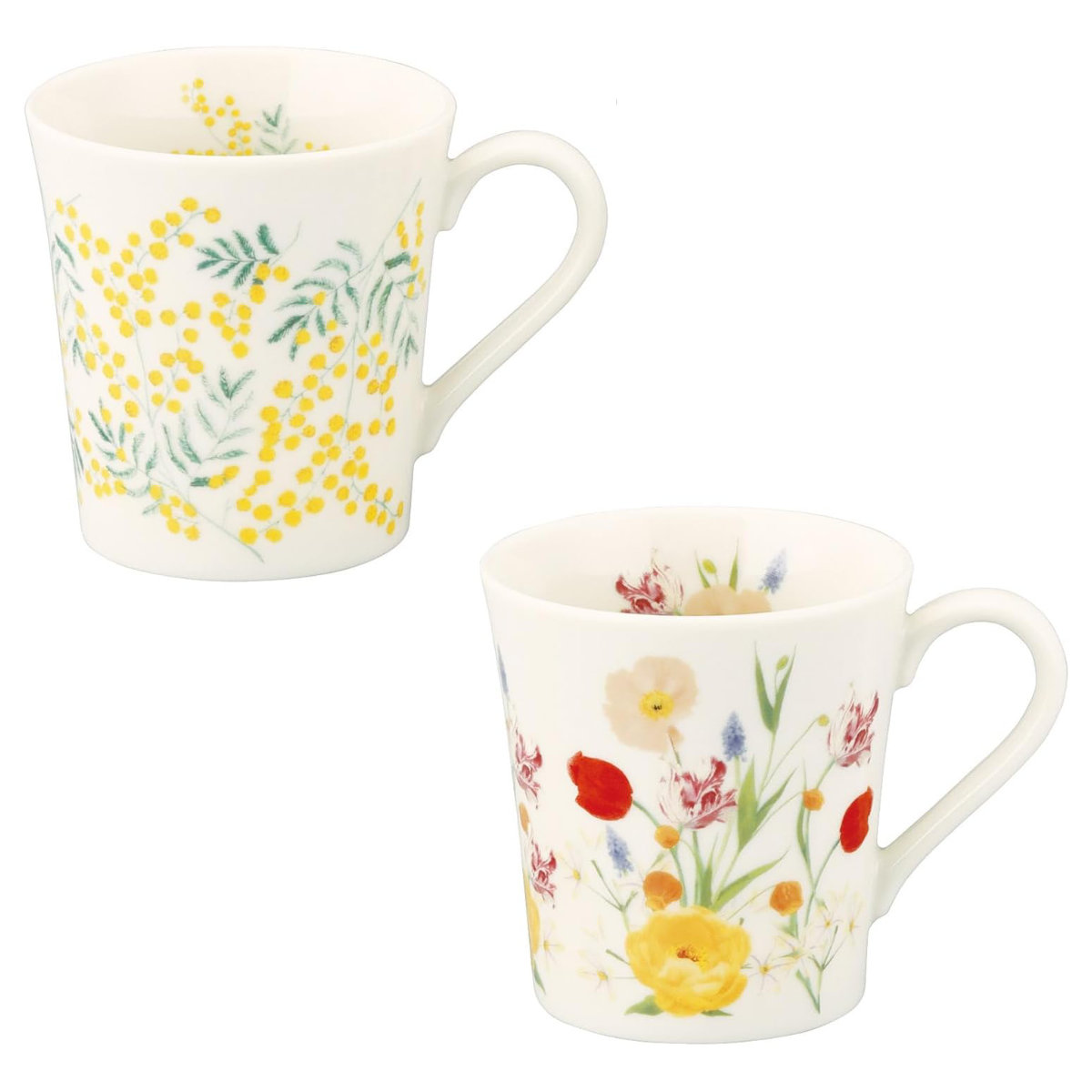 マグカップ HIBIYA-KADAN ペアマグセット ( 300ml 2個セット 食洗機対応 電子レンジ対応 磁器 日本製 マグ マグコップ カップ 食器 おしゃれ 上品 ギフト プレゼント ) 【ミモザ×チューリップ】