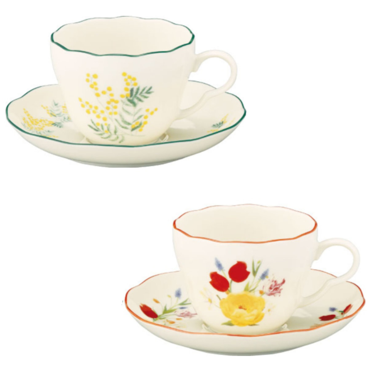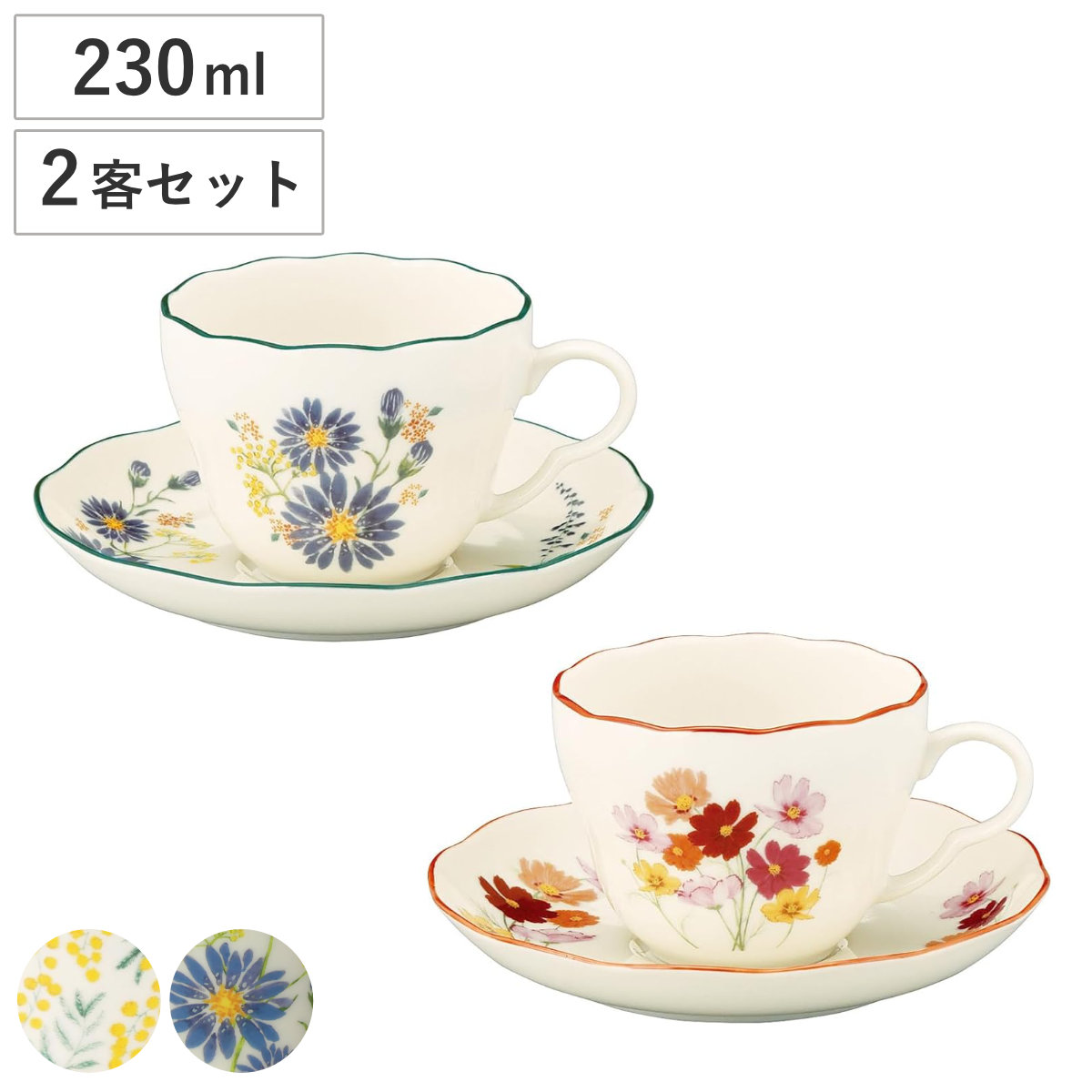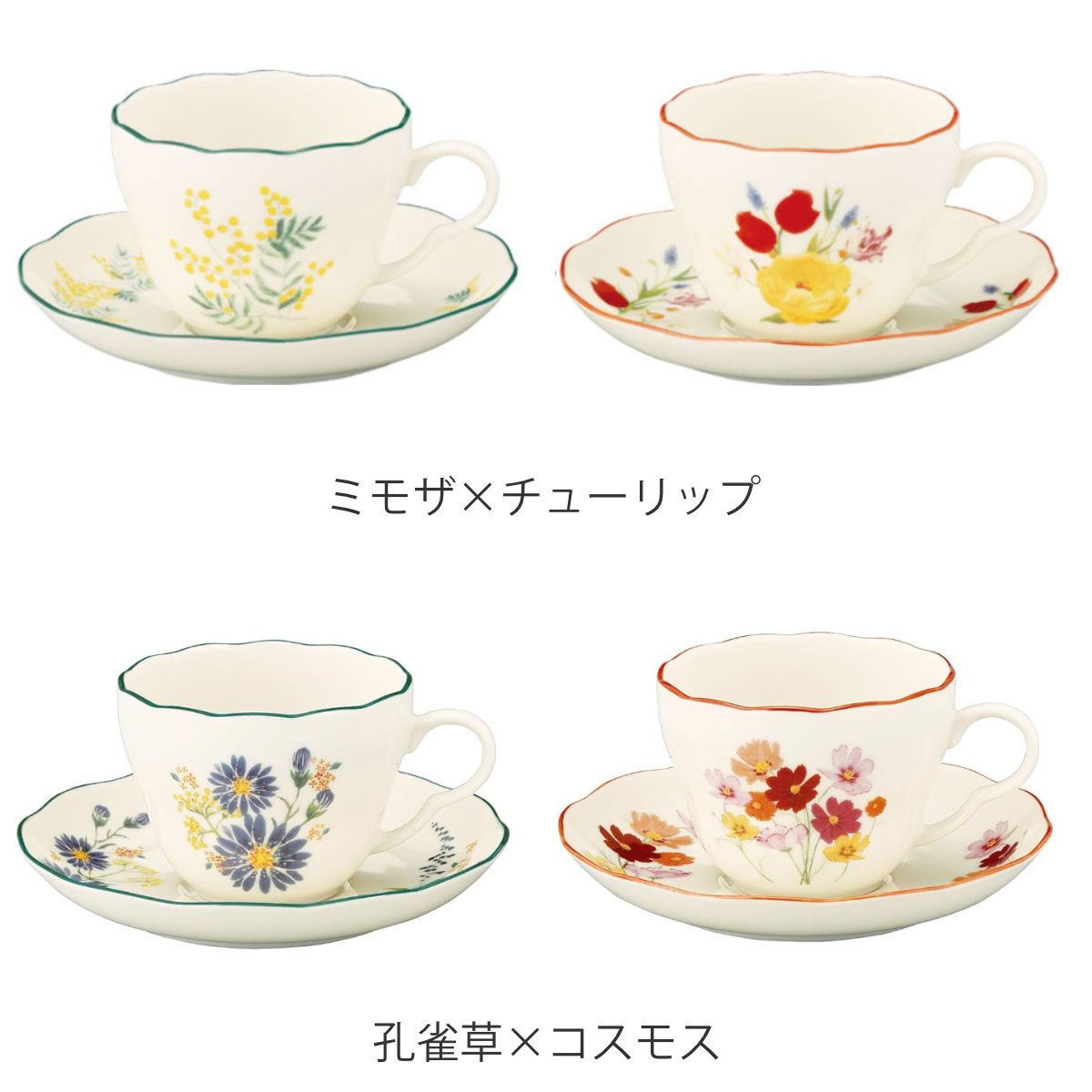 カップ ソーサー HIBIYA-KADAN ペアカップ&ソーサーセット ( 230ml 2個セット ペア セット 食洗機対応 電子レンジ対応 磁器 日本製 ティーカップ コーヒーカップ 食器 おしゃれ 上品 ギフト プレゼント ) 【ミモザ×チューリップ】