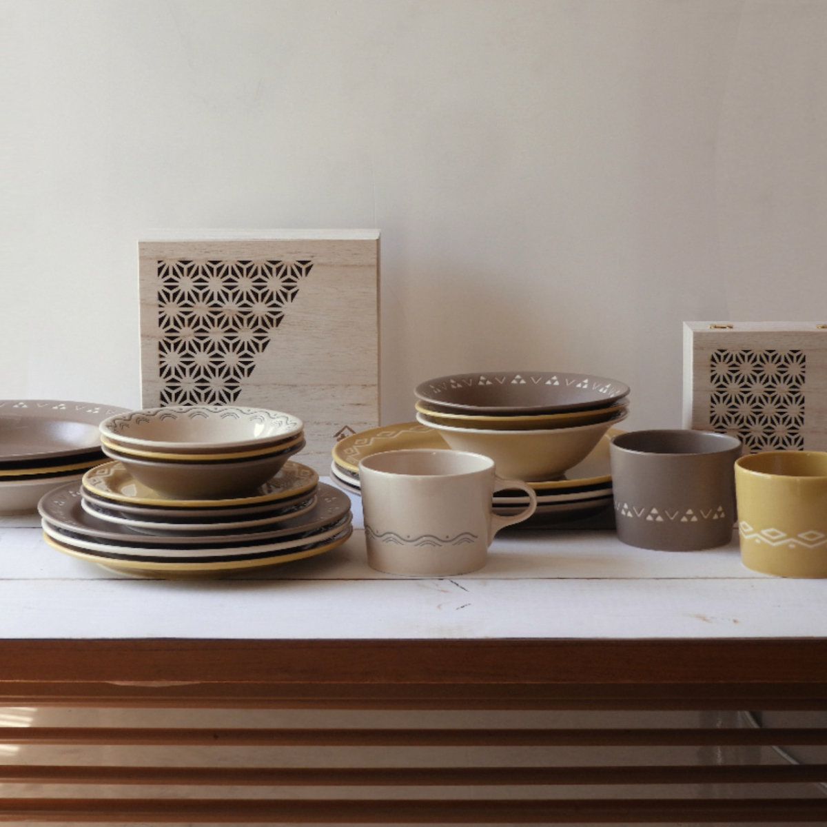 3種類の和柄(青海波、菱紋、鱗紋)を食器として使いやすいようにアレンジした「komon」シリーズのカップ&ソーサーのペアセットです。昔から伝わる伝統的な和柄には、各柄に祈りや想いが込められています。シックな色合いとシンプルなデザインは年齢を問わずお使いいただけます。ペアセットなので、贈り物にもおすすめです。