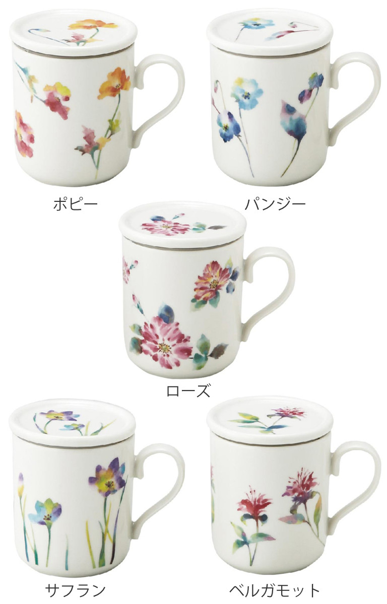 ティーポット ティーメイト ( 300ml 食洗機対応 電子レンジ対応 磁器 蓋付き マグカップ マグ カップ 茶こし付き おしゃれ 花柄 フラワー ハーブティー お茶 緑茶 紅茶 ) 【ベルガモット】