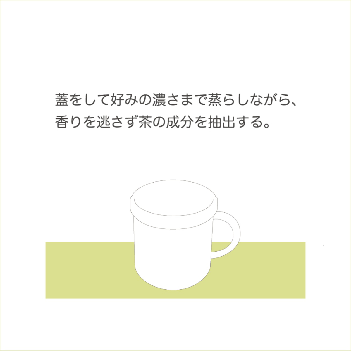 ●お好みの茶葉を入れて適温のお湯を注ぎフタをすることで、香りを逃さずじっくり抽出します。