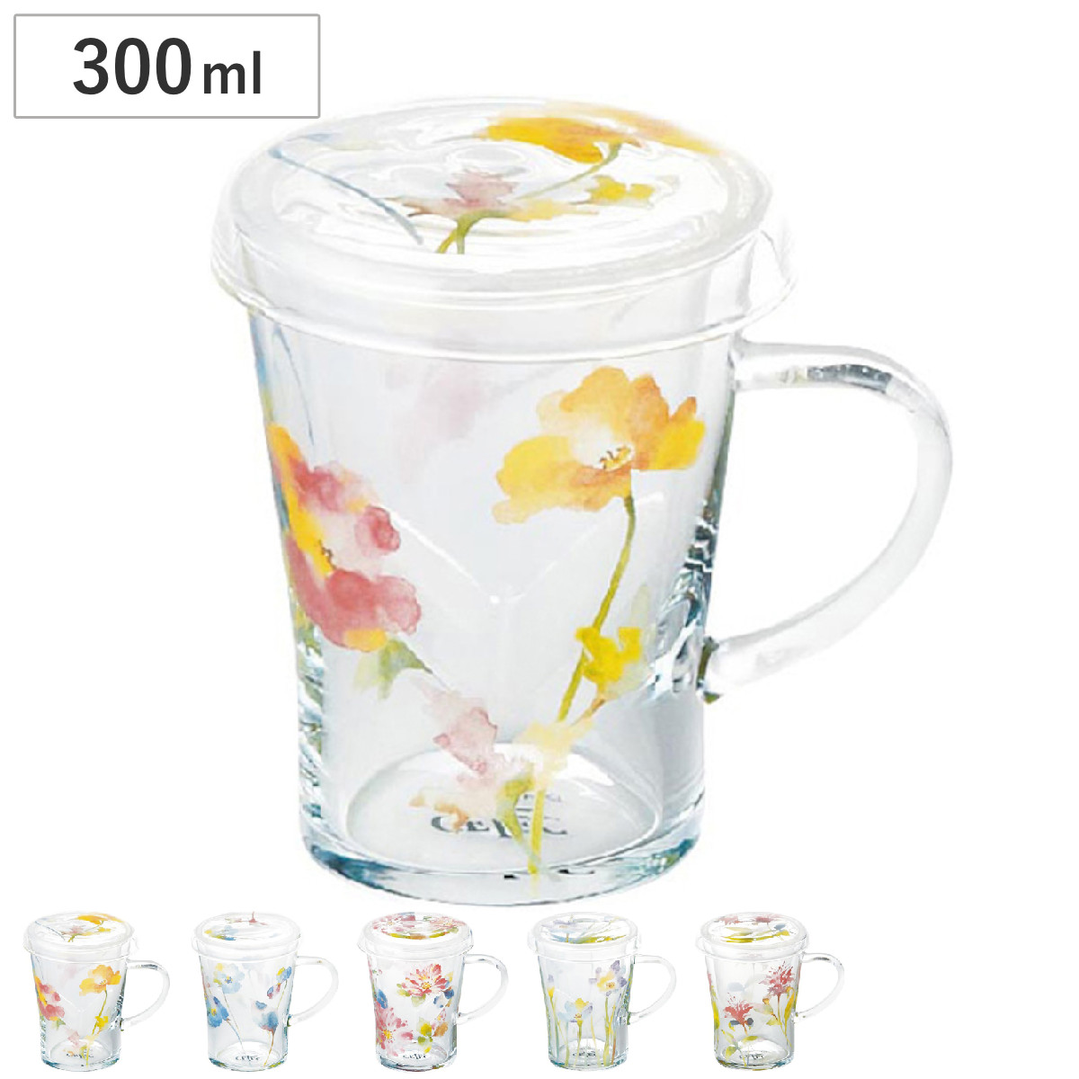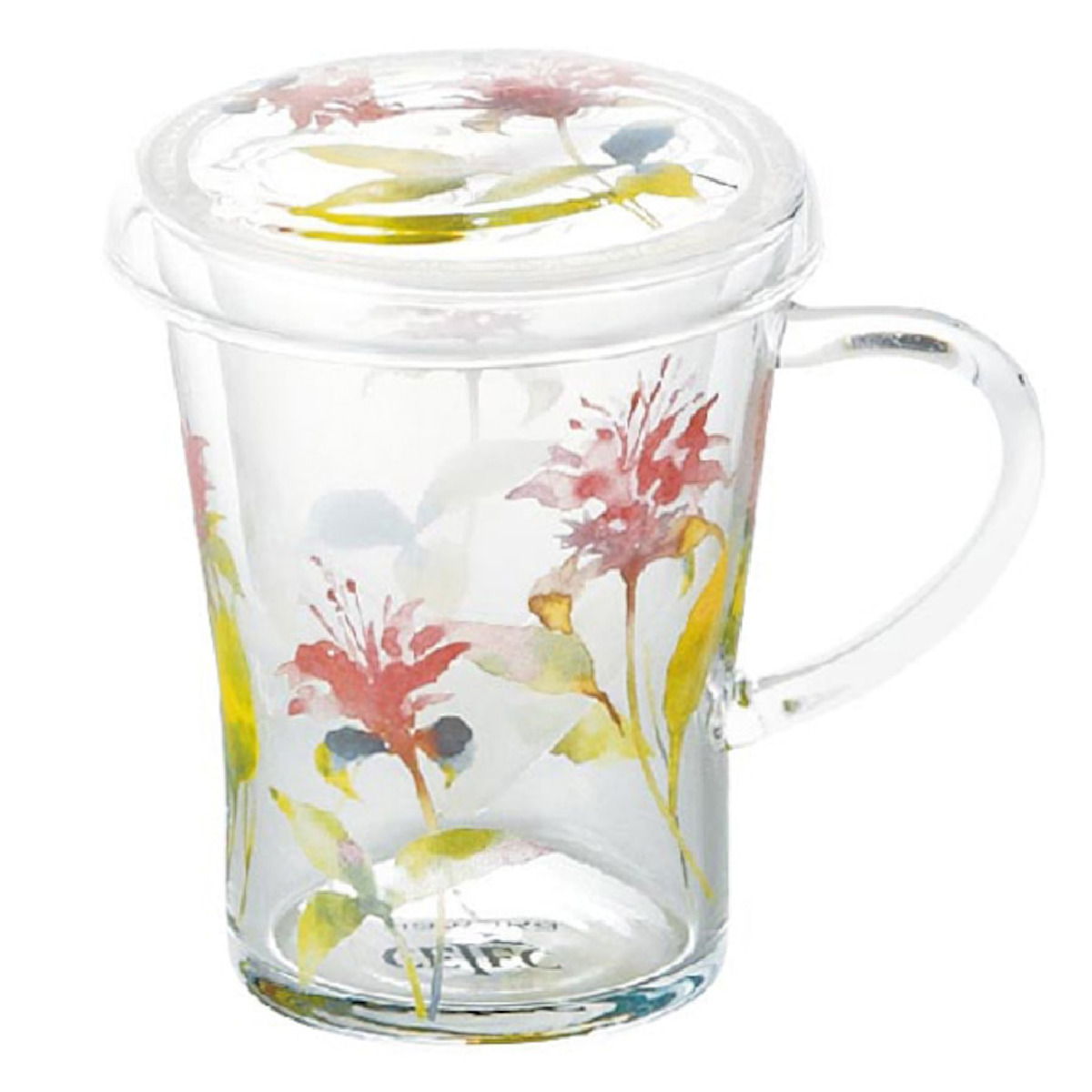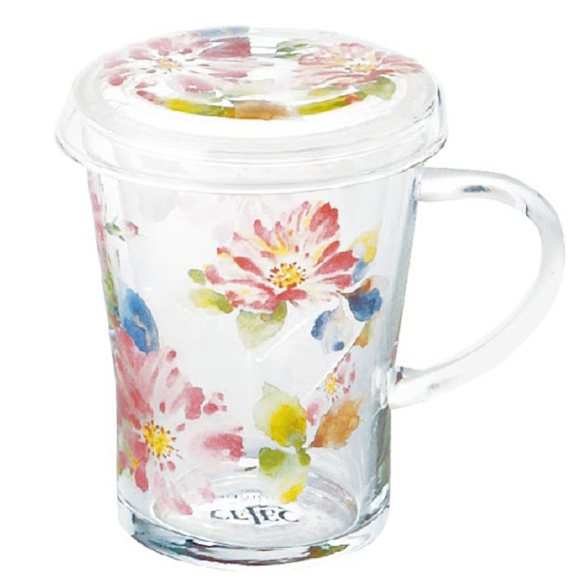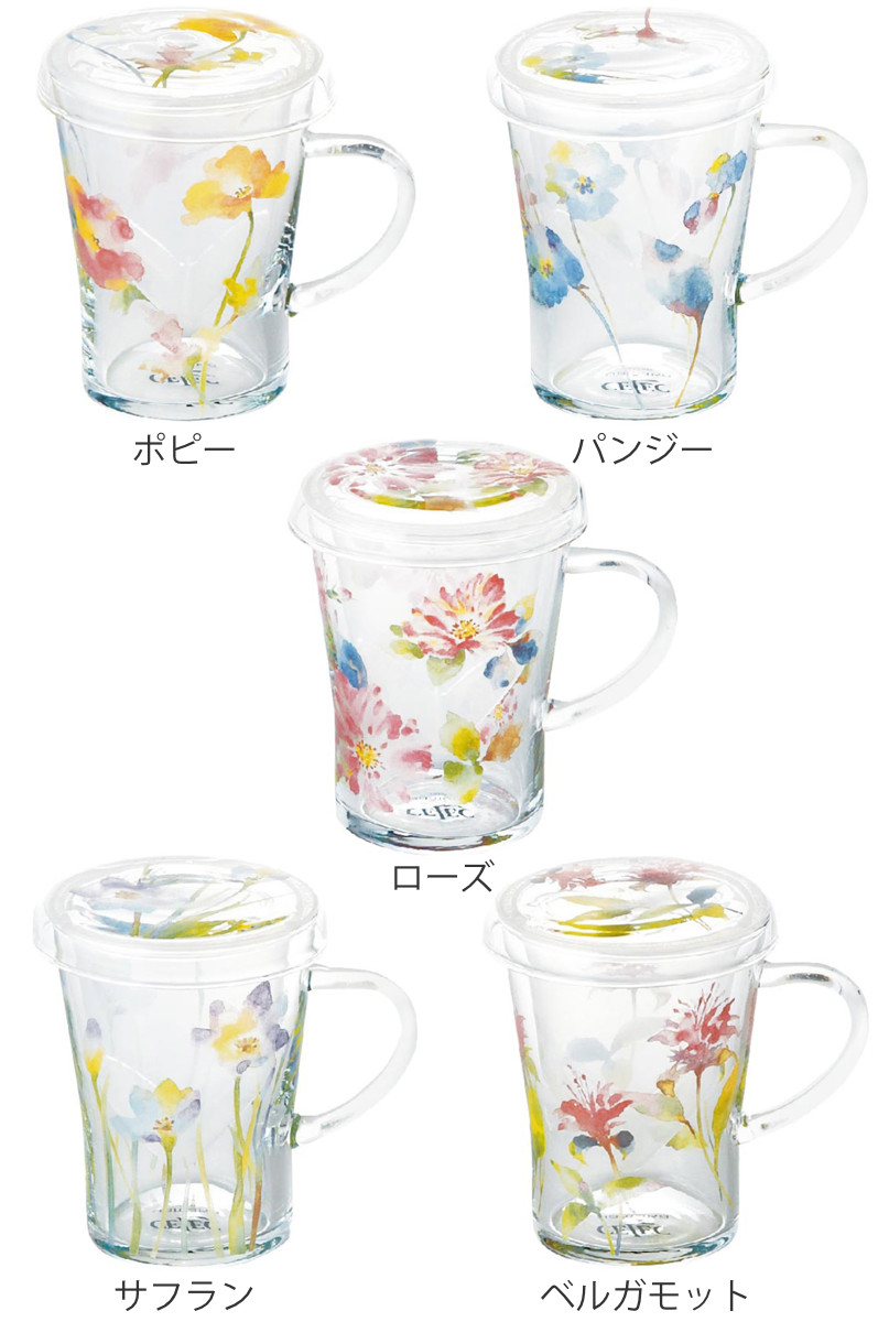ティーポット チャミエル ティーメイト ( 300ml 電子レンジ対応 耐熱ガラス 蓋付き マグカップ マグ カップ 茶こし付き おしゃれ 花柄 フラワー ハーブティー お茶 緑茶 紅茶 ) 【ローズ】