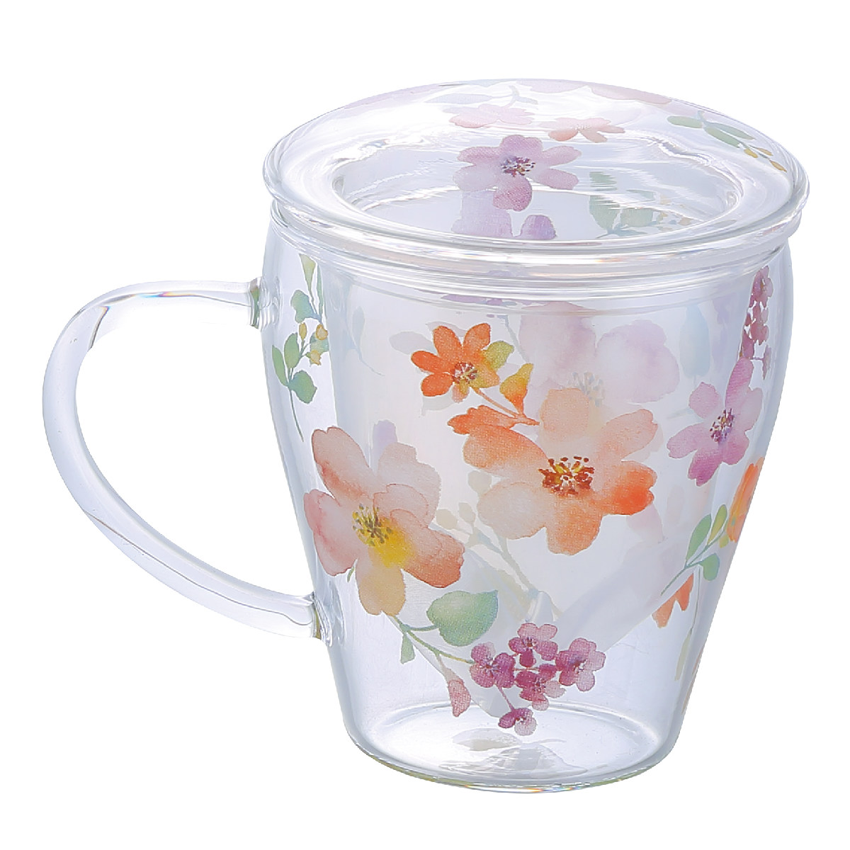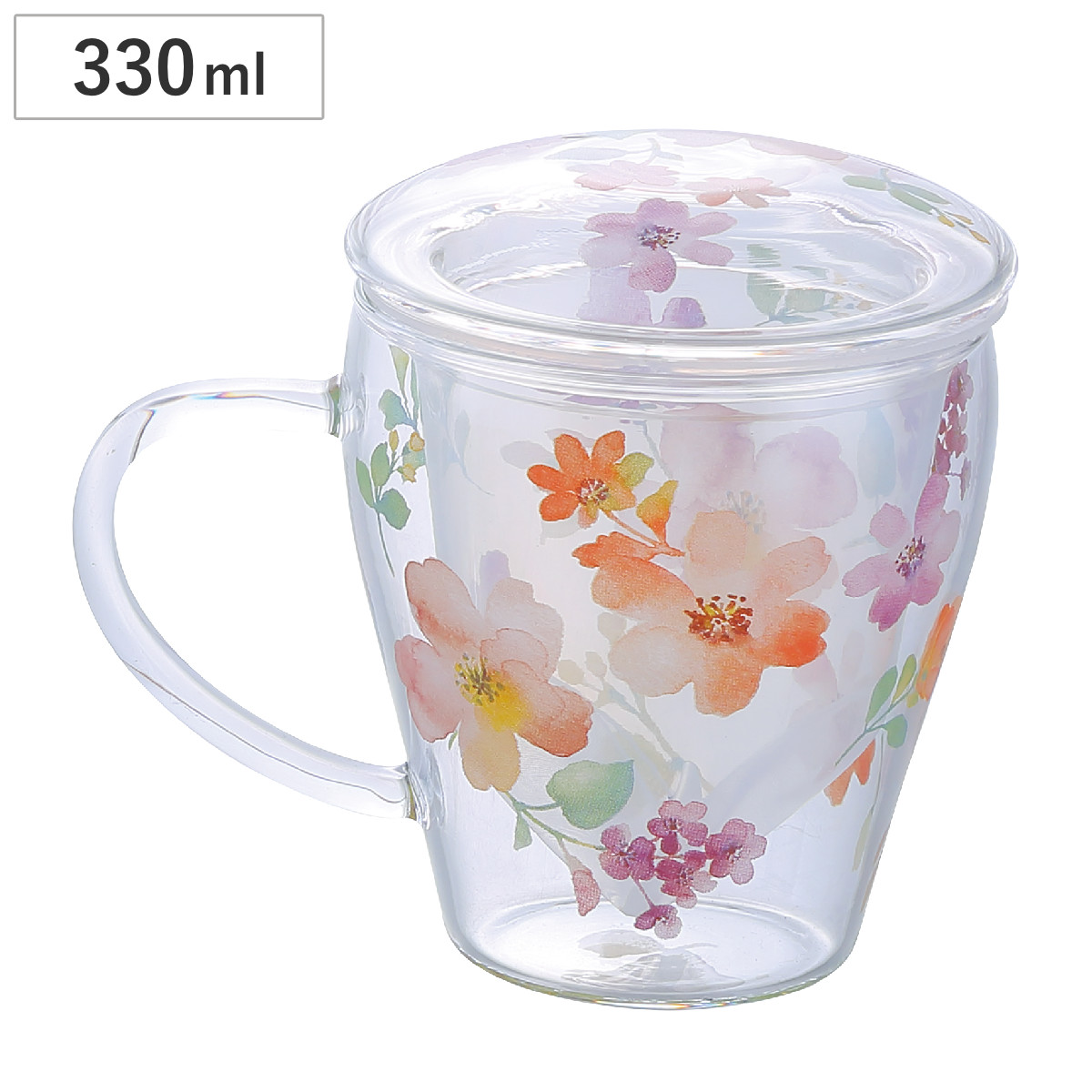 ティーポット チャミエル ティーメイト ( 330ml 電子レンジ対応 耐熱ガラス 蓋付き マグカップ マグ カップ 茶こし付き おしゃれ 花柄 フラワー ハーブティー お茶 緑茶 紅茶 )