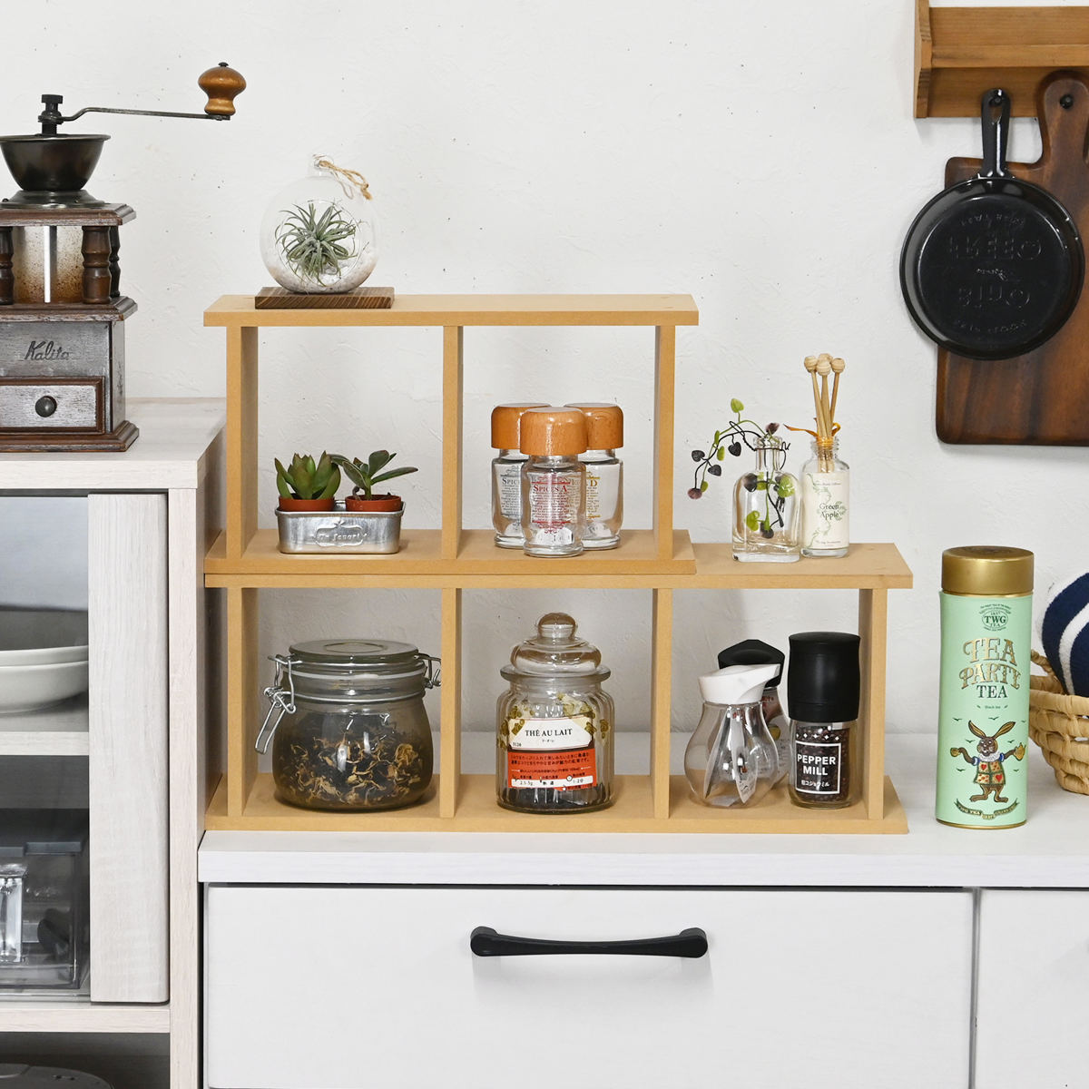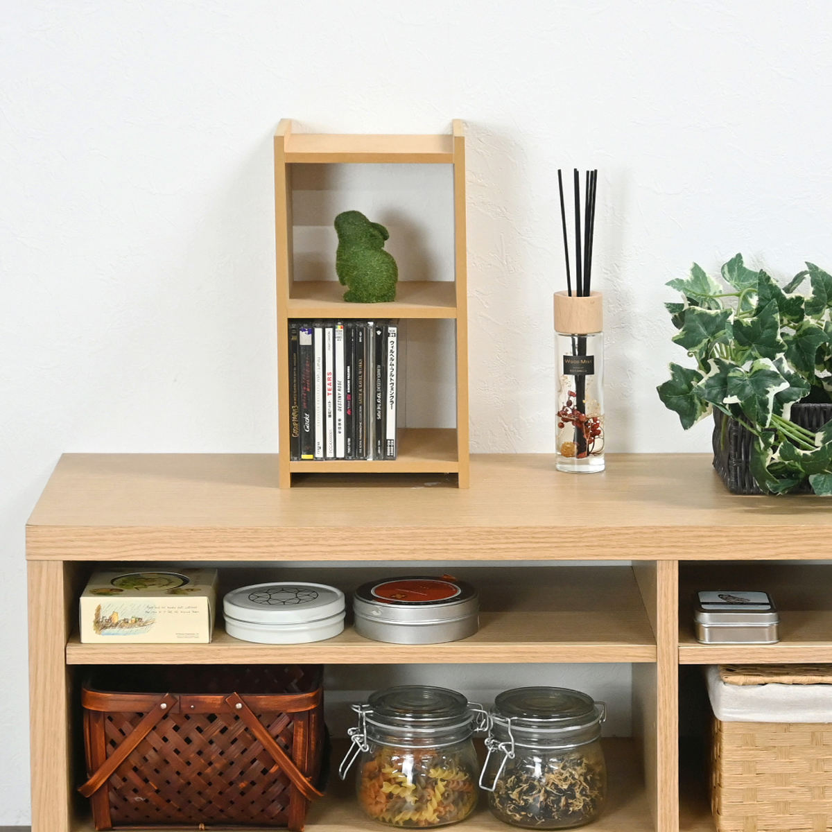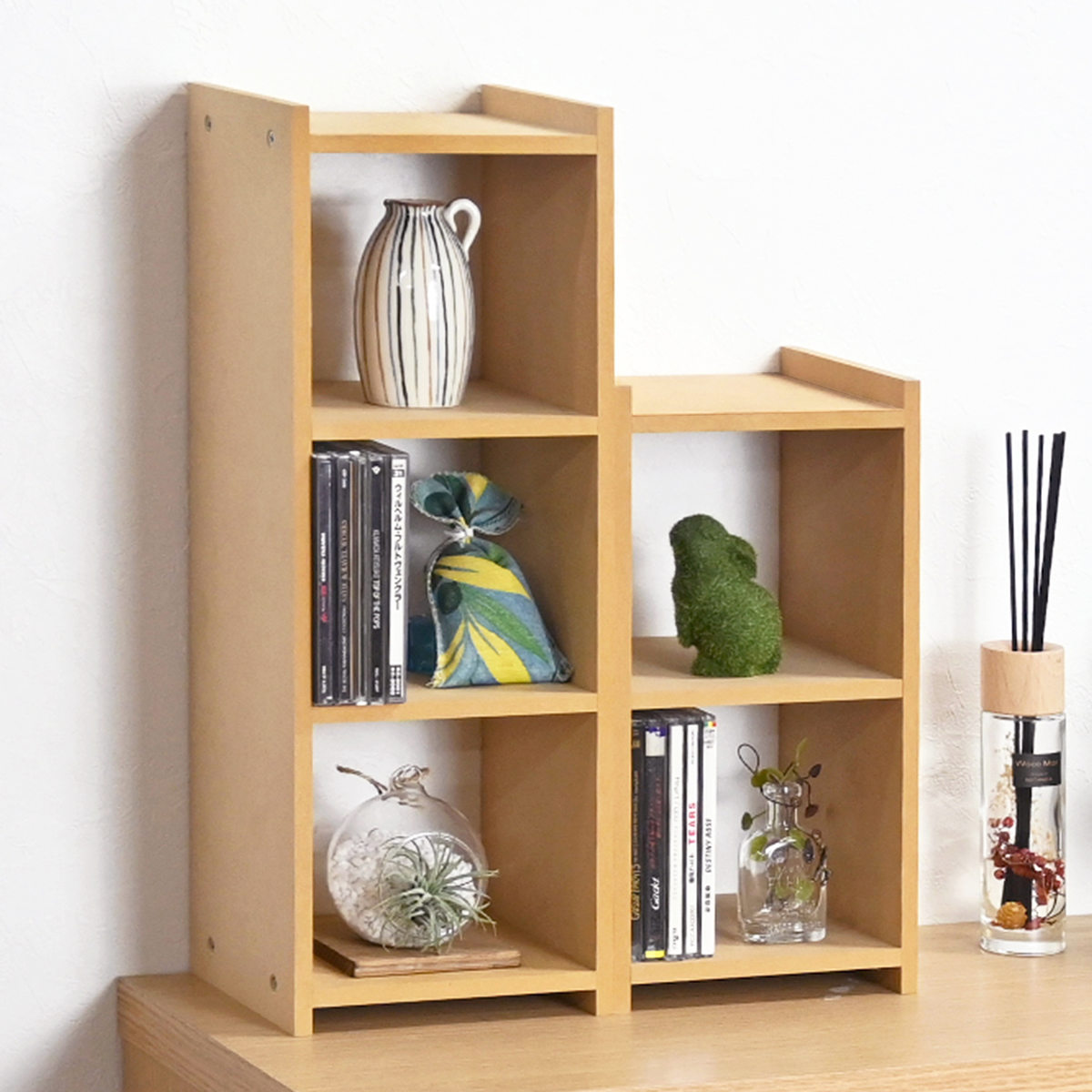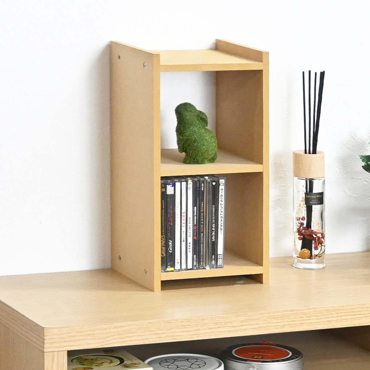 棚やデスクの上のスペースを有効活用できる、コンパクトなオープンラックです。小物の整理はもちろん、お気に入りの雑貨やグリーンのディスプレイにもぴったりです。シンプルなデザインで、お部屋の雰囲気にやさしくなじみます。