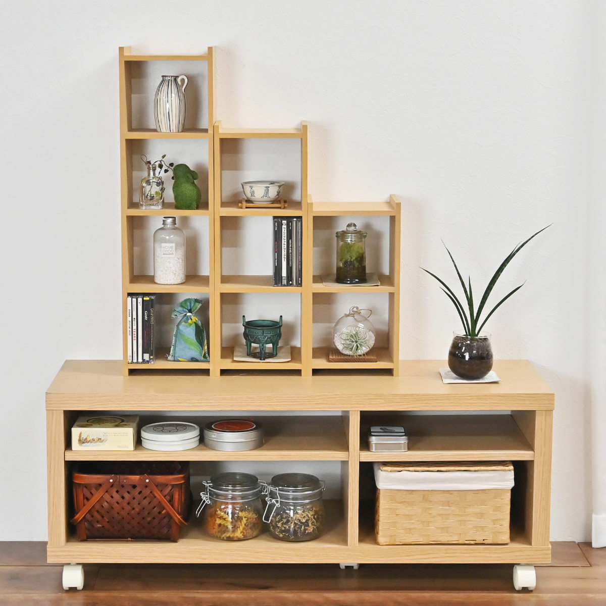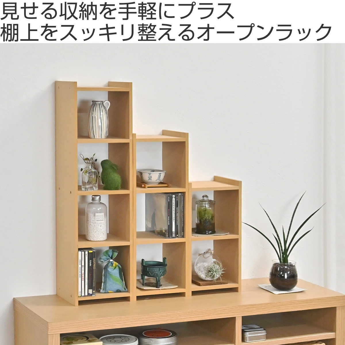 2段・3段・4段のサイズ展開です。同じシリーズで並べて使えば、空間に統一感が生まれ、よりすっきりとした印象に仕上がります。