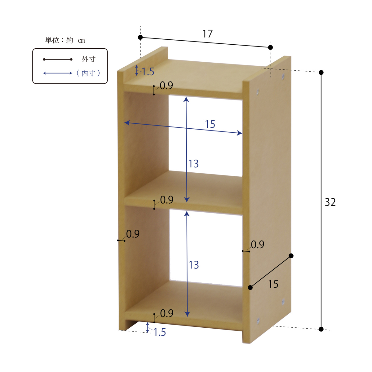 サイズ約 幅17×奥行15×高さ32(cm)