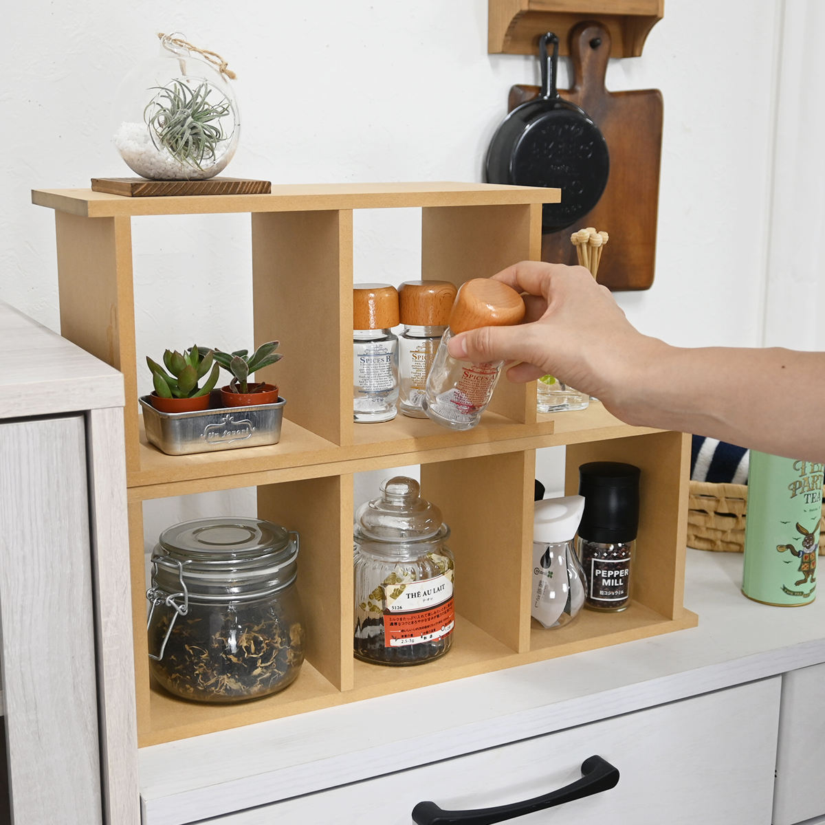 縦置き・横置きどちらでも使えるので、リビングやキッチン、洗面所など幅広いシーンで活躍します。スパイスラックやコスメ収納、インテリア小物の整理など、用途に合わせて便利にお使いいただけます。