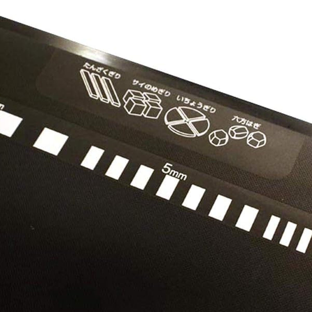 サイズを確認しながらカットできる目盛り付き。 下ごしらえや盛り付け用のカットにも便利です。