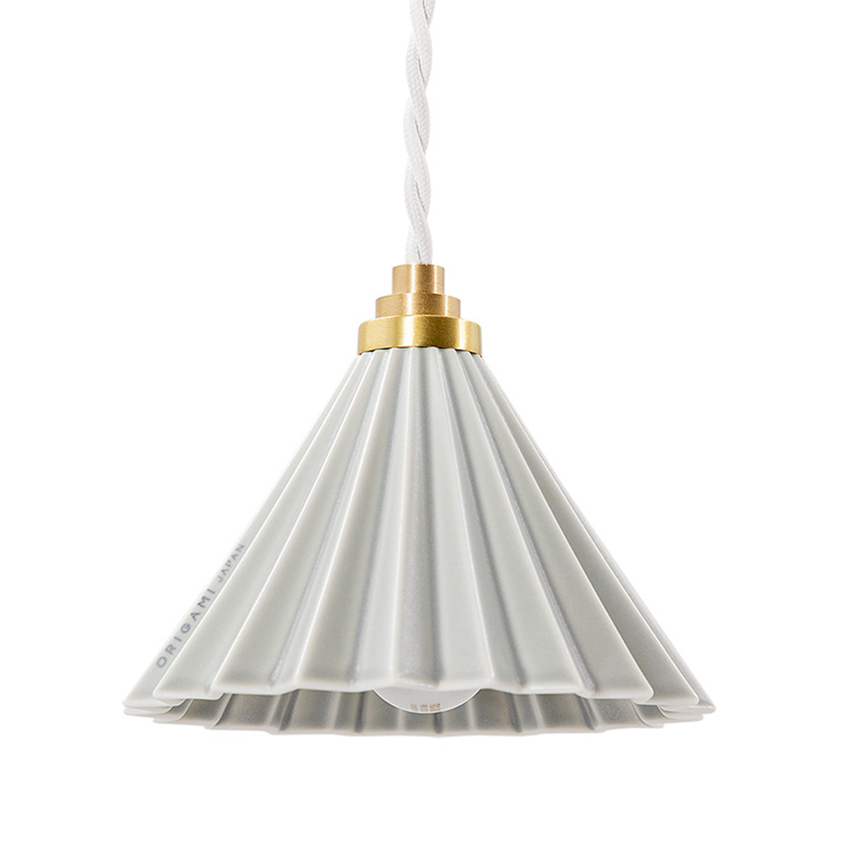 まるで折り紙を折ったような美しいフォルムが人気のコーヒードリッパー「ORIGAMIドリッパー」。その色合い、サイズ感などがランプシェードにぴったりであったことから、そのままランプになりました。ツイストコードと真鍮のパーツを組み合わせた上品なデザインに仕上がっています。