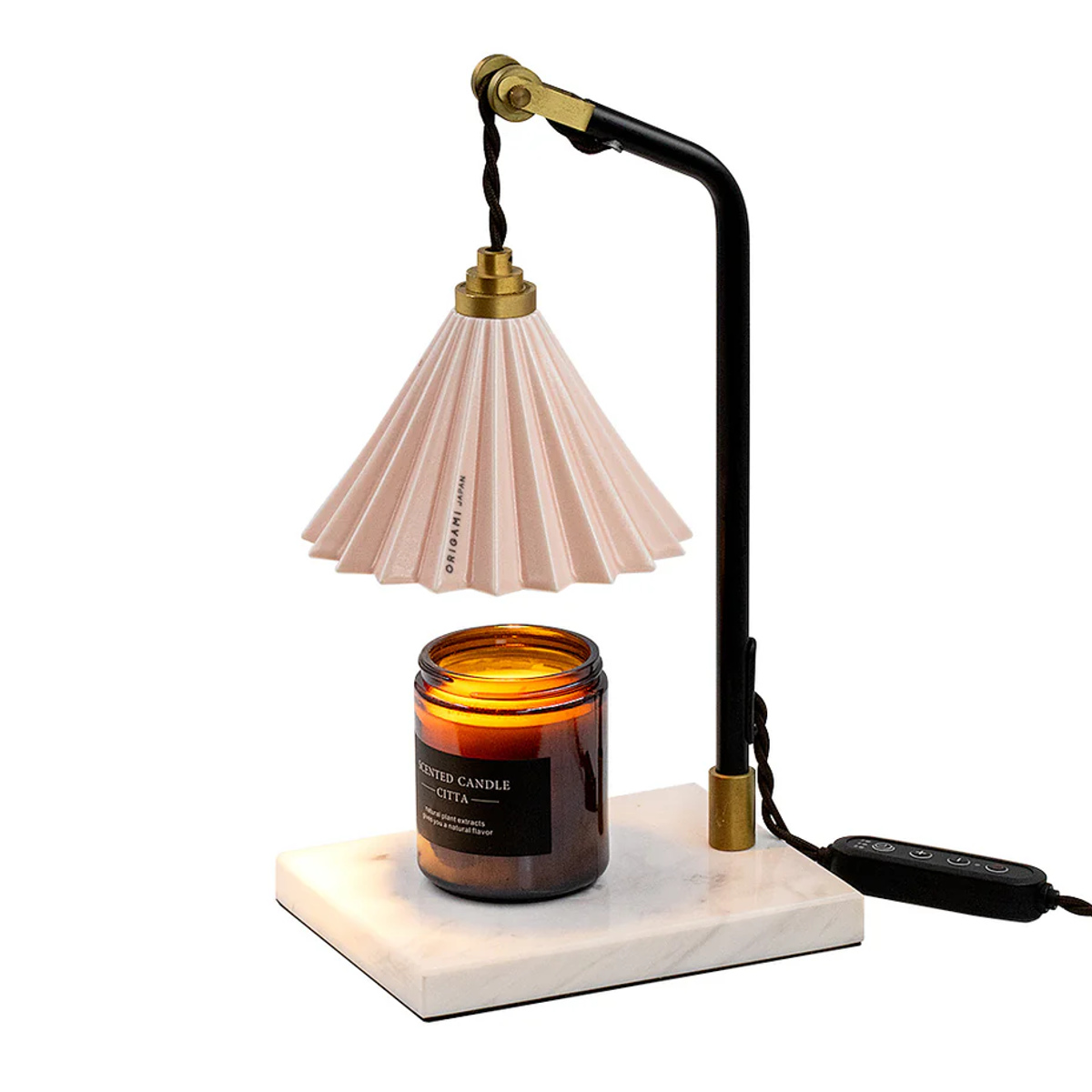 まるで折り紙を折ったような美しいフォルムが人気のコーヒードリッパー「ORIGAMIドリッパー」が、そのままランプシェードになりました。大理石と真鍮のパーツを組み合わせ、上品でキュートなデザインのキャンドルウォーマーに仕上がっています。