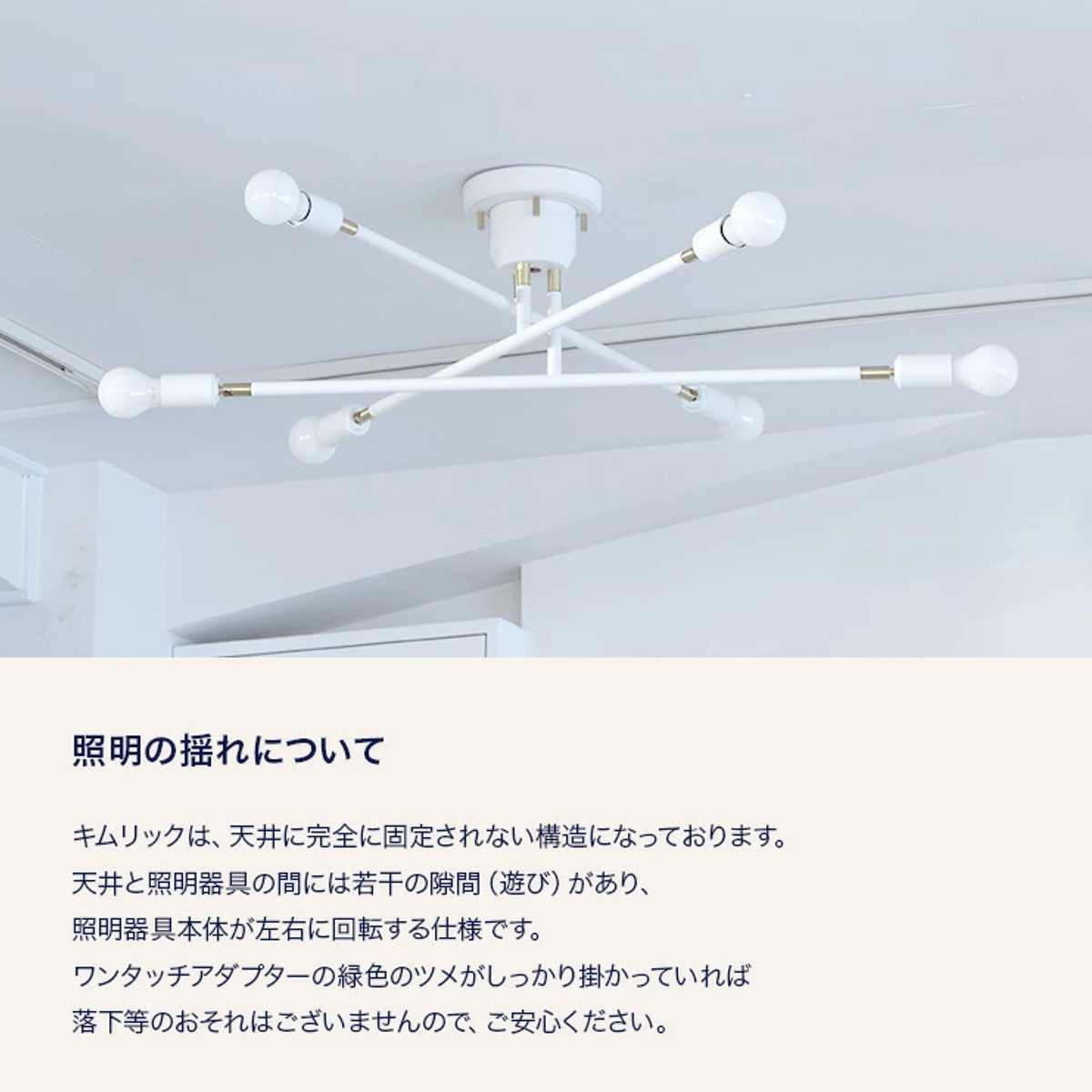 ![]() ホワイト電球付き シーリングライト 6灯 キムリック | ![]() 電球付き ブラス シーリングライト 6灯 キムリック |