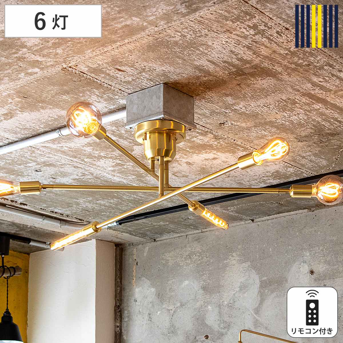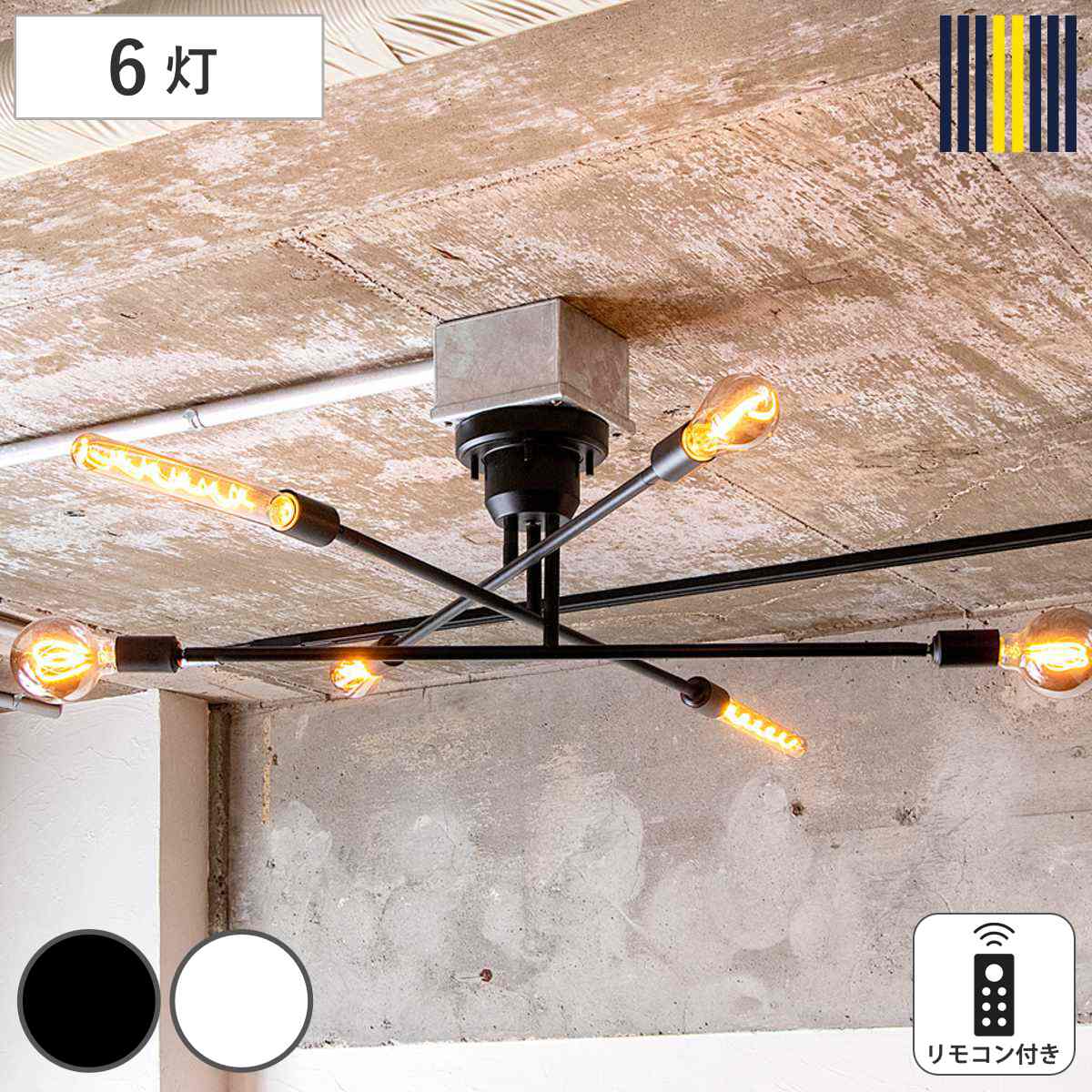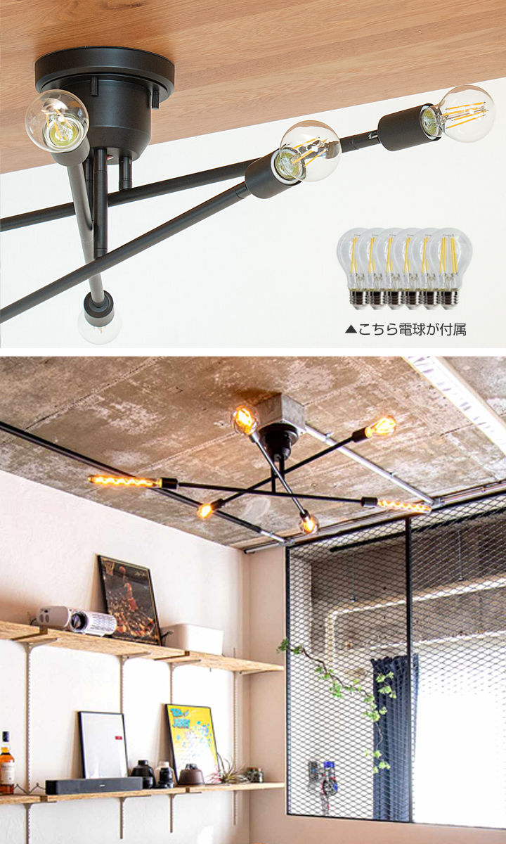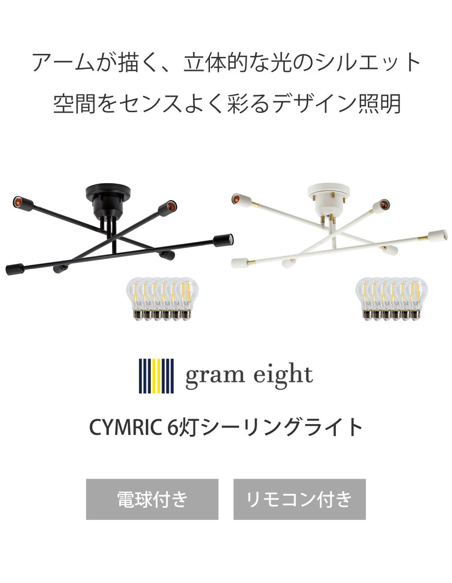 シーリングライト 6灯 LEDクリア電球付き キムリック リモコン付き gram eight グラムエイト ( バーライト 照明器具 天井照明 インダストリアル モダン CYMRIC リビング ダイニング キッチン カフェ リモコン 薄型 電球 おしゃれ ) 【ブラック】