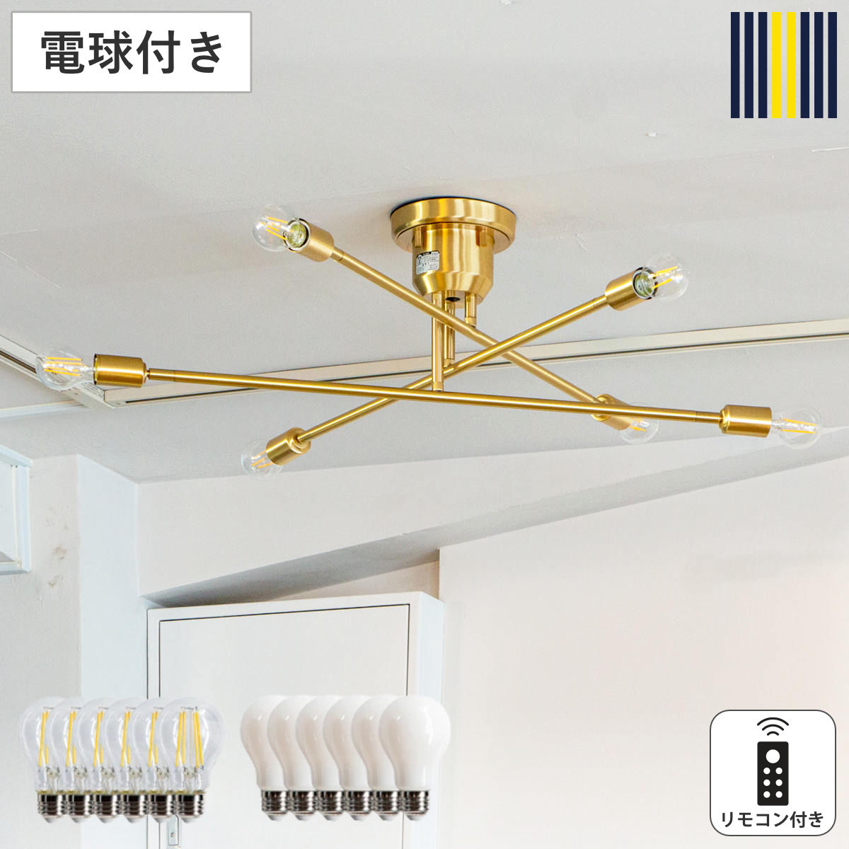| 備考 | 【仕様】 ・口金:E26 ・最大ワット数:60ワット×6 ※LED電球対応 ※リモコン式電球使用不可 点灯方法:赤外線リモコン(単4電池×2 別売) 点灯切替:6灯・4灯・2灯・消灯 切タイマー:30分・60分・120分 【取付方法】 引掛けシーリング式 【LED電球】 ・消費電力:7ワット 全光束:810ルーメン 色温度:2800ケルビン 外寸:幅60×奥行き60×高さ104mm 重量:31g ※メーカー保証を受けられる際は、商品に同梱されている保証書、購入日がわかるもの(領収書や納品書など)が必要になります |