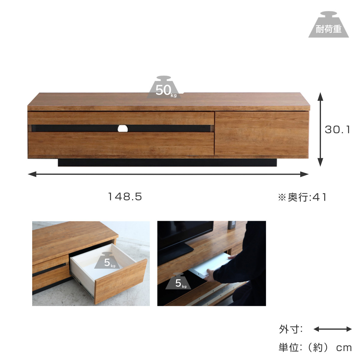 | サイズ | 約 幅148.5×奥行41×高さ30.1(cm) |