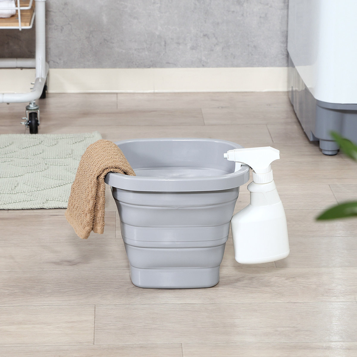 バケツ 折りたたみ 5L 持ち手付き 軽量 収納 折りたたみバケツ ( ばけつ ソフトバケツ 角型 小さい コンパクト たためる ソフト タブ つけ置き ランドリー バスケット レジャー ペット ) 【グレー】