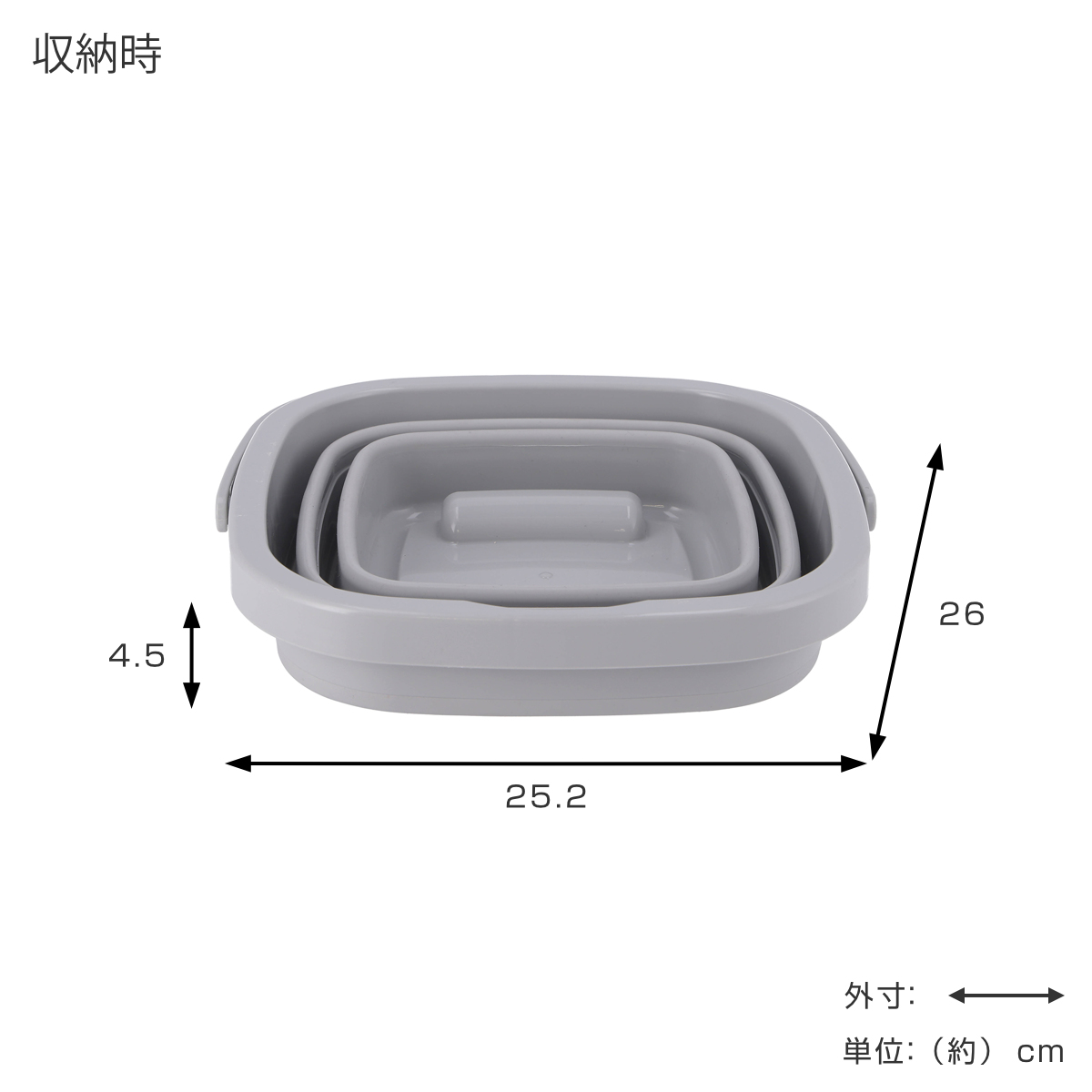 | サイズ | 使用時:約 幅25.2×奥行き26×高さ20(cm) 収納時:約 幅25.2×奥行き26×高さ4.5(cm) |