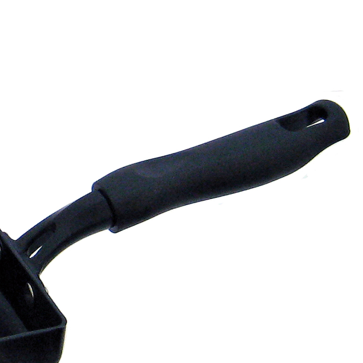 ハンドルは樹脂製となっており、熱くなりにくく持ちやすいです。フック穴付きなので、吊るし収納も可能です。