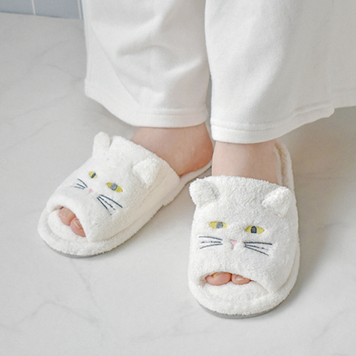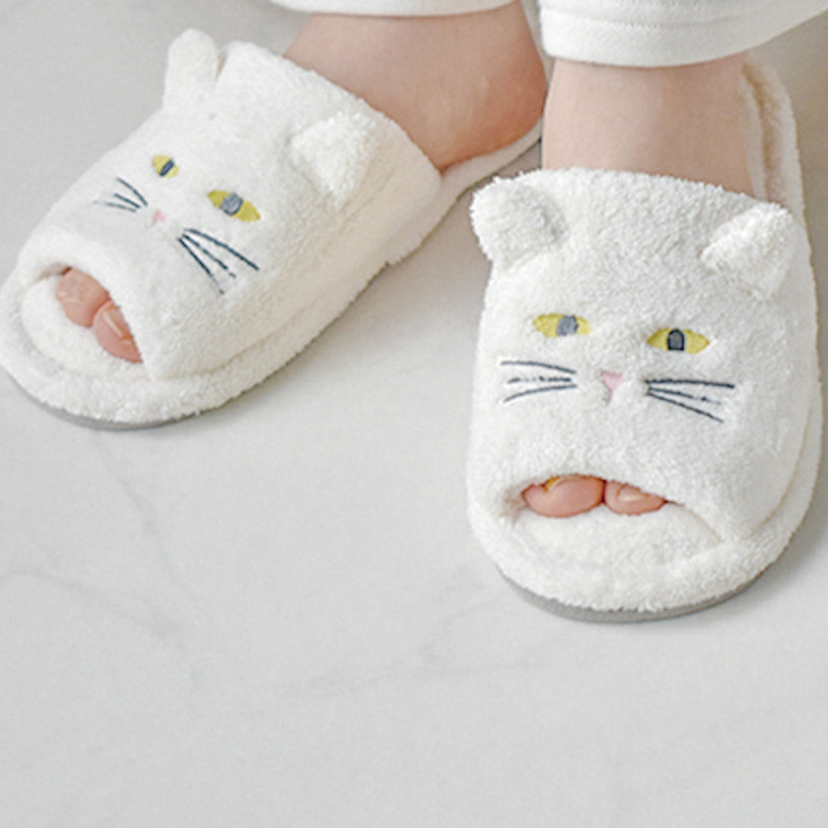 お風呂上がりも快適なフワフワ猫の吸水スリッパ