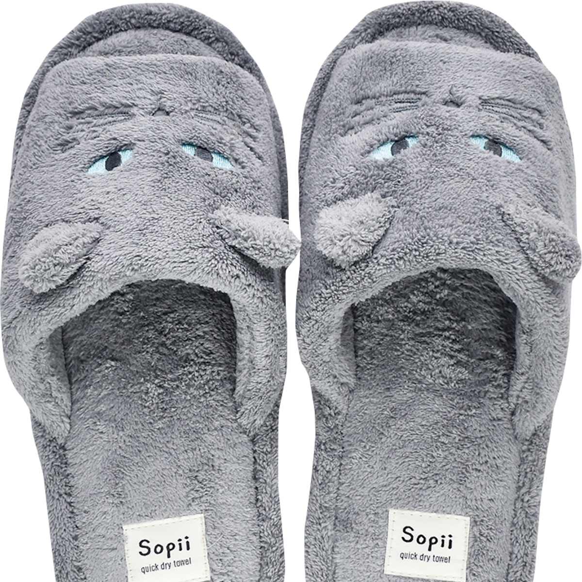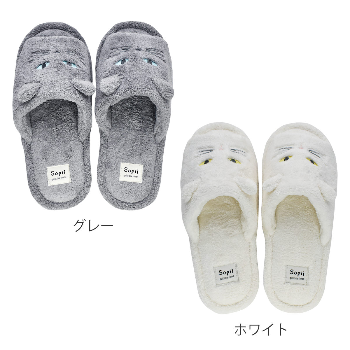 スリッパ Sopii クイックドライスリッパ キャット ( お風呂上り 湯上がり ルームシューズ 吸水 レディース 猫デザイン 23~24.5cm 室内履き ムレにくい シンプル かわいい タオル地 気持ち良い ネコ ) 【グレー】
