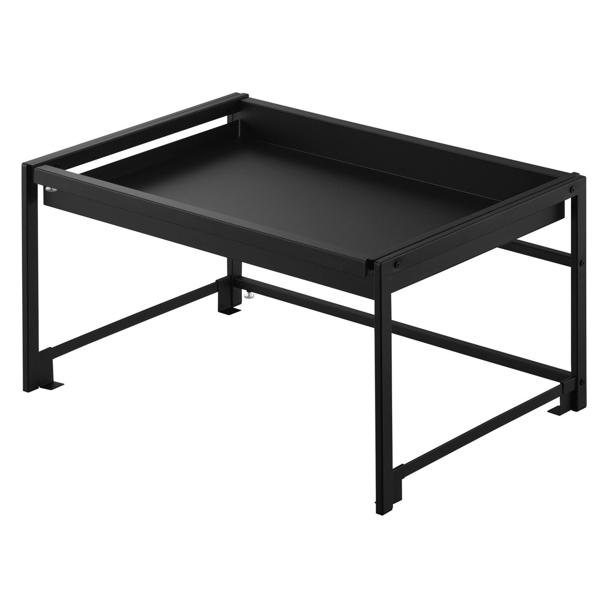 コンロやシンク下にある引き出しの中のスペースを有効活用できる、奥行き30cmの伸縮スライドラックです。幅が58.8~90cmまで伸縮できるため、設置する場所に合わせて自由に調節が可能です。
