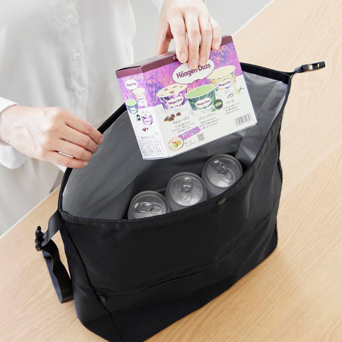 荷物の量に合わせてサイズ調節ができる、日常使いにちょうどいい保冷・保温エコバッグです。コンパクトに折り畳めるため、持ち運びやすく便利です。仕事帰りや休日のお出かけにも活躍します。