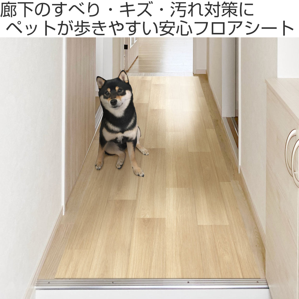 フローリングの廊下で滑りやすいペットの足元をサポートする、廊下敷きタイプのペット用シートです。凹凸加工になっており、歩行時の滑りによるケガを軽減し、足腰への負担をやわらげます。