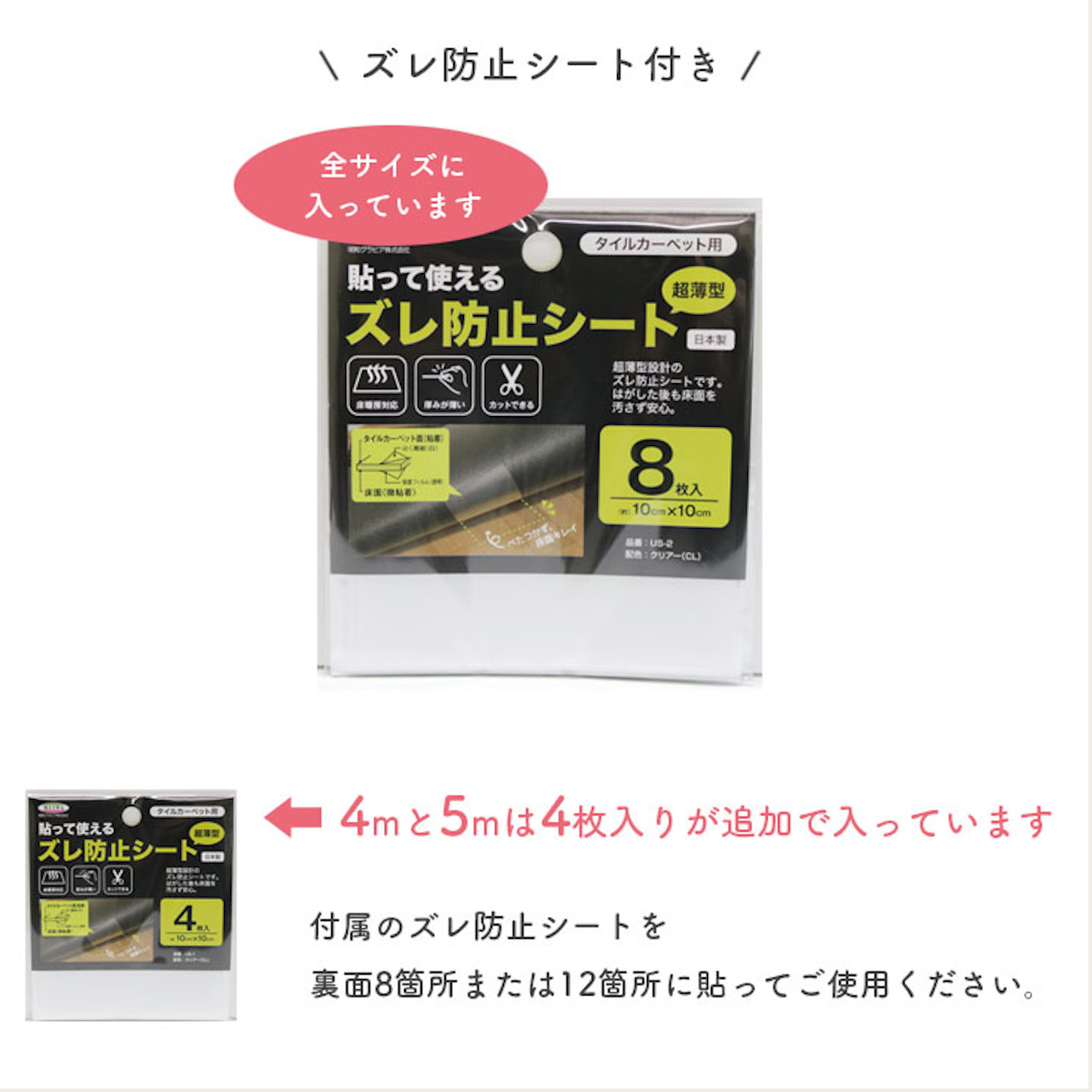 付属のズレ防止シートで安心