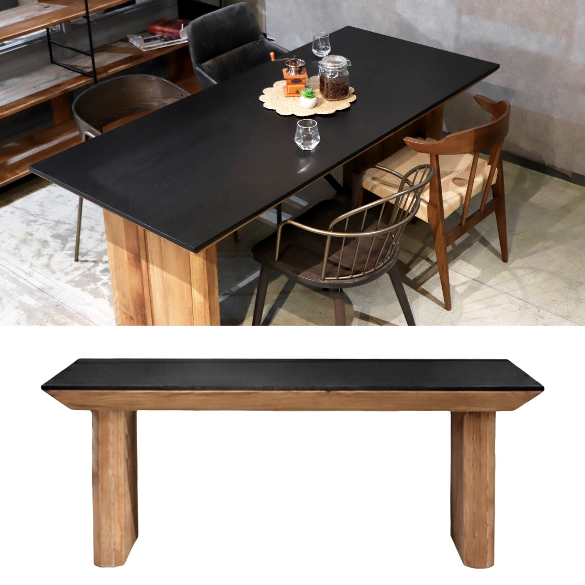 ダイニングテーブル 幅180cm 木製 UPカント ( テーブル 食卓テーブル 机 食卓机 天然木 古材 長方形 ダイニング 食卓 木製テーブル 4人掛け 作業台 シンプル テーパー加工 ワイド 木脚 ブラック天板 ヴィンテージ調 )