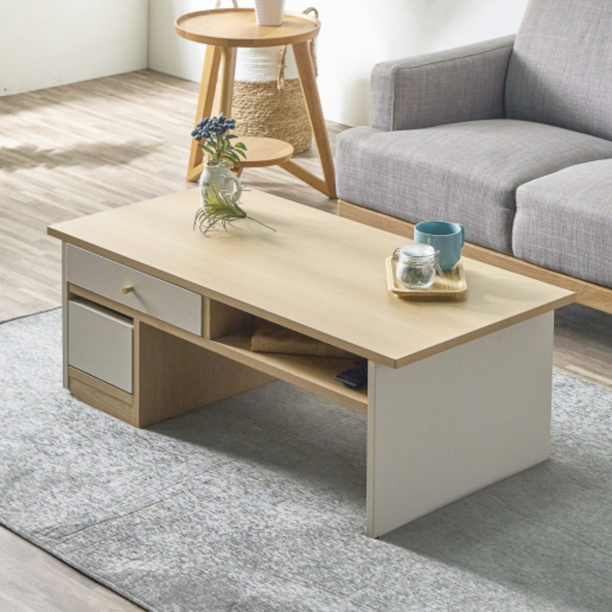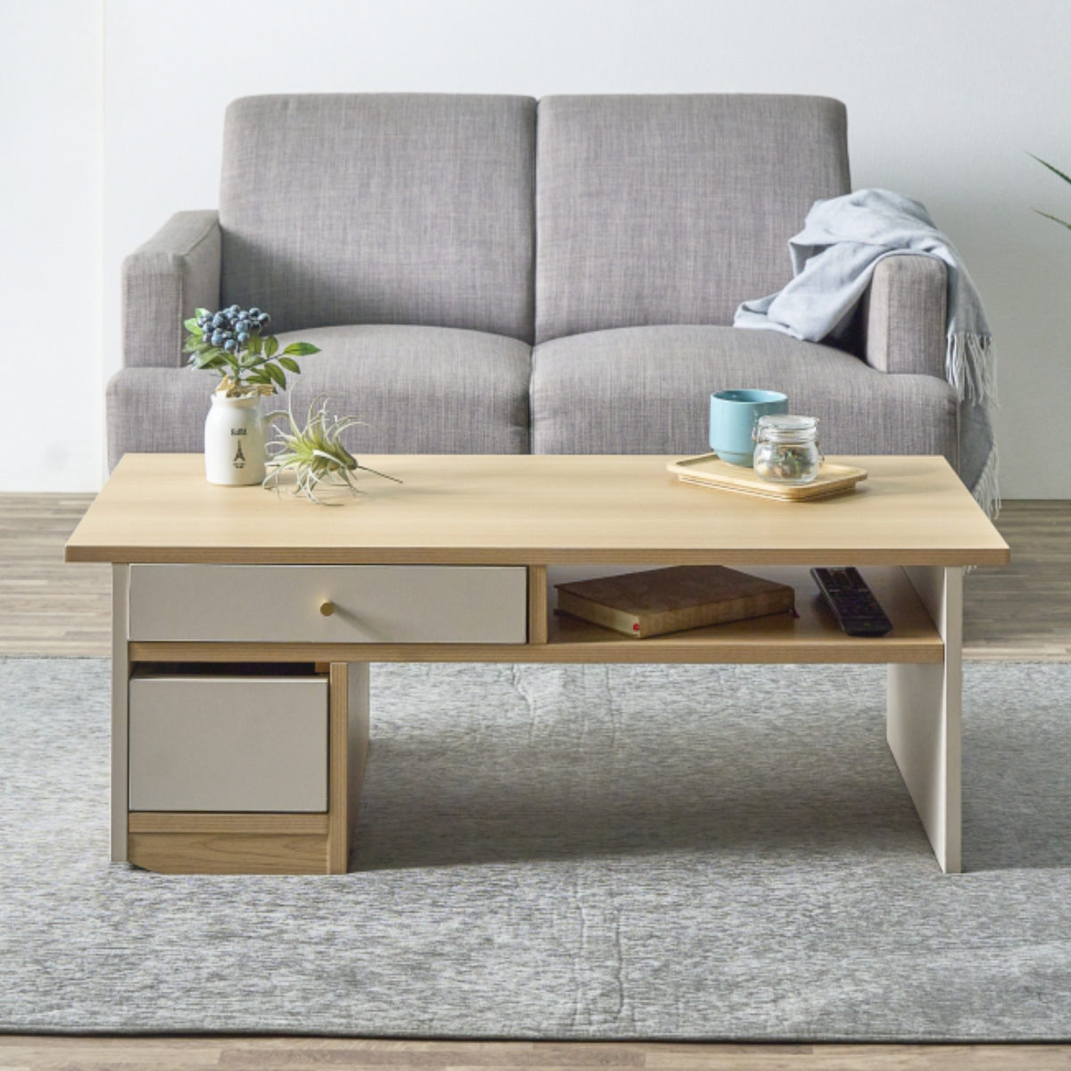 くつろぎと使いやすさを両立した収納付きローテーブル